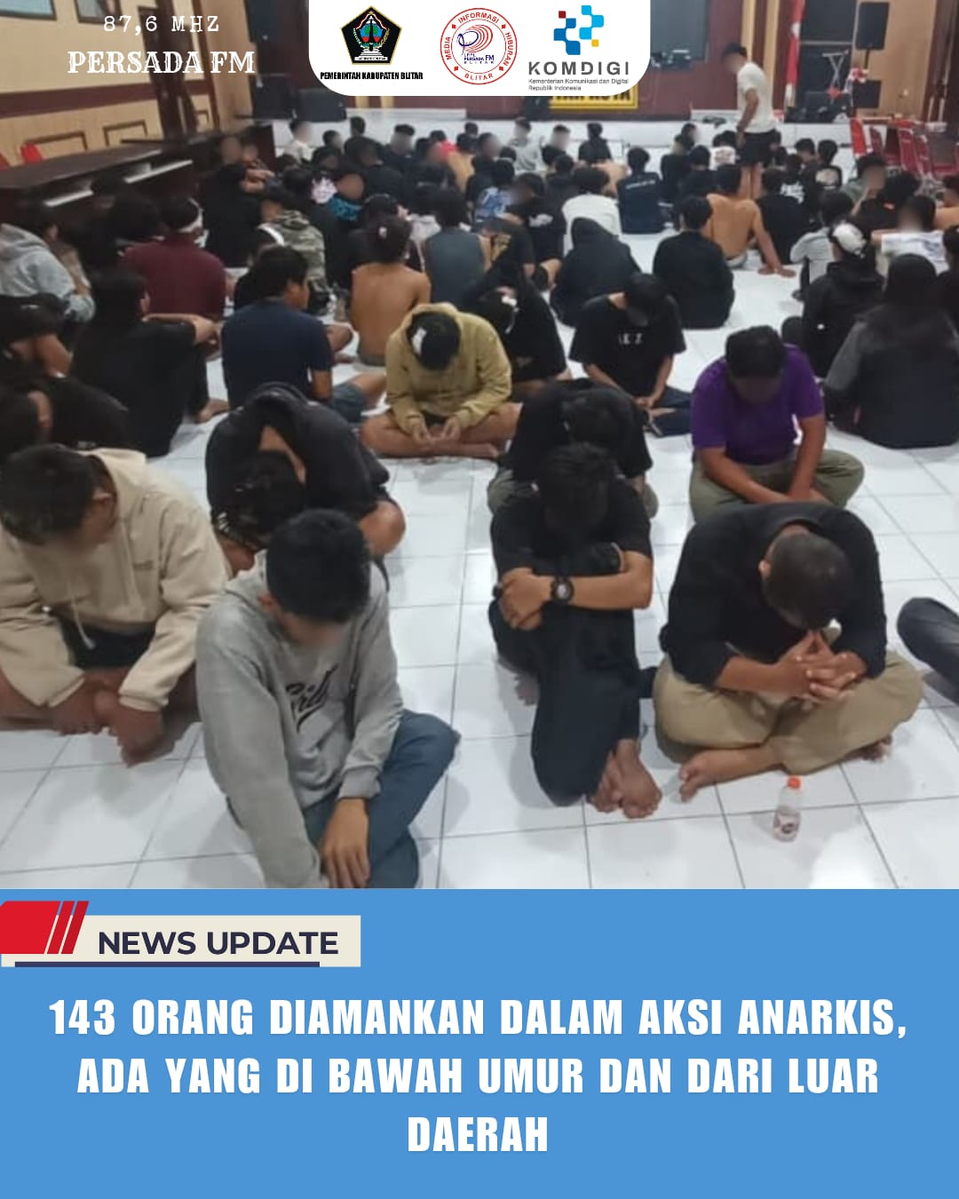 Dalam peristiwa tersebut, sebanyak 143 orang berhasil diamankan, terdiri dari remaja hingga orang dewasa. Ironisnya, ada yang masih berusia di bawah umur.