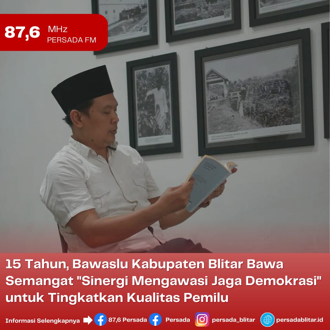 PersadaFM – Badan Pengawas Pemilu (Bawaslu) telah mengabdi pada masyarakat Indonesia sejak 9 April 2008. Bawaslu seluruh tingkatan di Indonesia baru saja merayakan hari jadi ke 15 dengan membawa semangat “Sinergi Mengawasi Jaga Demokrasi”.Ketua Bawaslu Kabupaten Blitar Abdul Hakam Sholahuddin, pada Selasa (11/4/2023) saat diwawancarai terkait spirit Hari Jadi Bawaslu ke 15 pihaknya berharap Pemilihan Umum (Pemilu) serentak 2024 dapat berjalan sesuai peraturan perundang-undangan yang berlaku.