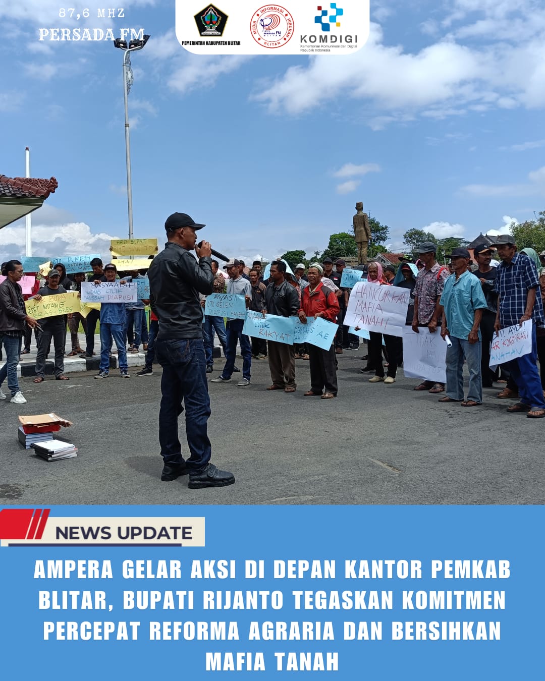 AMPERA GELAR AKSI DI DEPAN KANTOR PEMKAB BLITAR, BUPATI RIJANTO TEGASKAN KOMITMEN PERCEPAT REFORMA AGRARIA DAN BERSIHKAN MAFIA TANAH