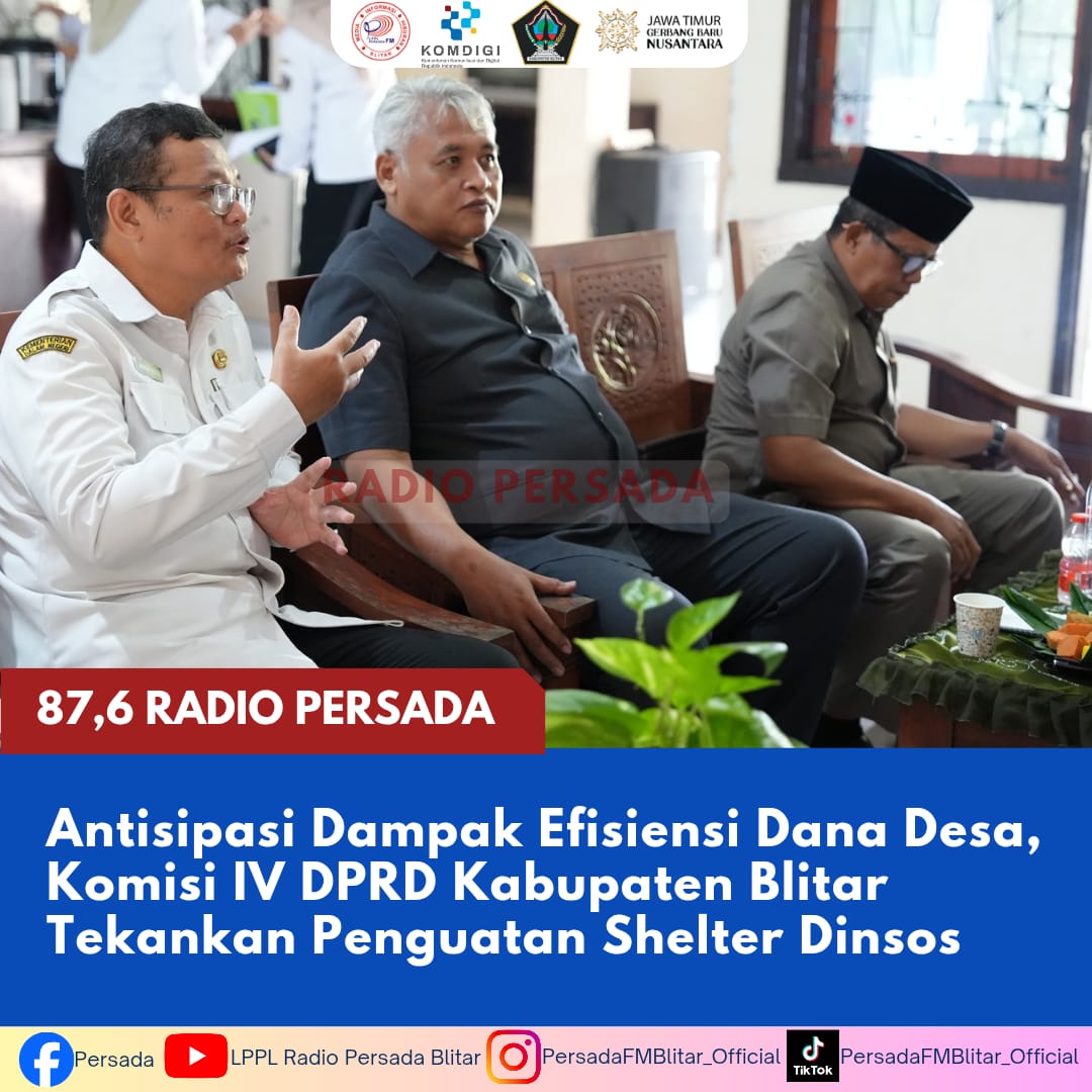 PersadaFM – Komisi IV DPRD Kabupaten Blitar mendorong Pemerintah Kabupaten (Pemkab) Blitar memperkuat kapasitas shelter milik Dinas Sosial sebagai langkah antisipasi terhadap potensi meningkatnya penanganan masalah sosial.