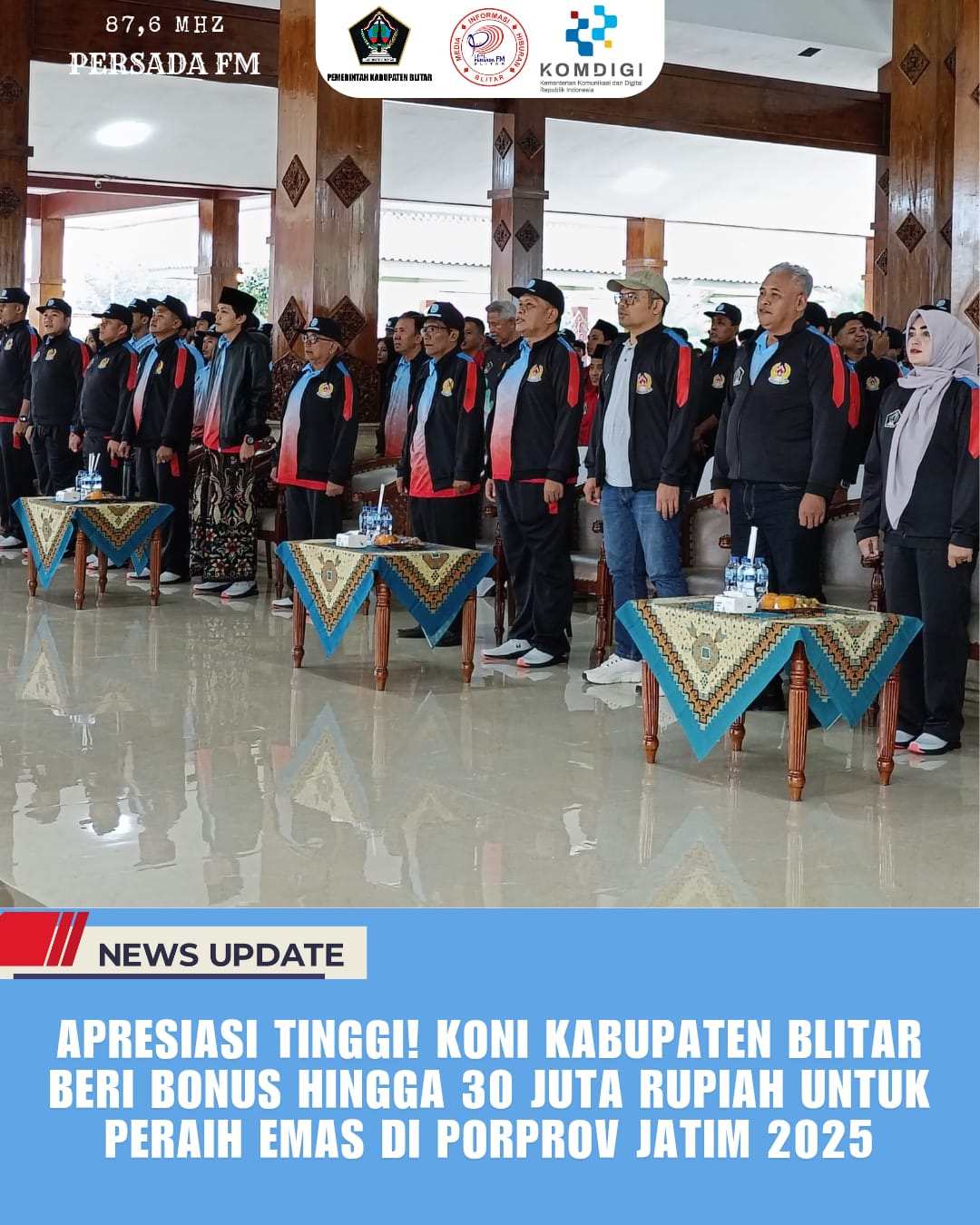 PersadaFM – Komitmen tinggi ditunjukkan KONI Kabupaten Blitar dalam memberikan penghargaan kepada atlet-atlet terbaik yang berlaga di ajang Porprov Jatim IX 2025. Sebagai bentuk apresiasi atas perjuangan dan kerja keras para atlet, KONI menyiapkan bonus fantastis hingga Rp30 juta untuk setiap peraih medali emas.