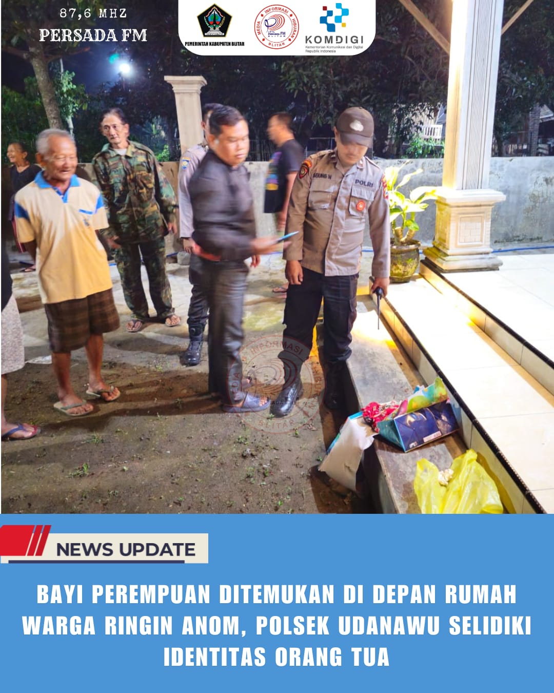 BAYI PEREMPUAN DITEMUKAN DI DEPAN RUMAH WARGA RINGIN ANOM, POLSEK UDANAWU SELIDIKI IDENTITAS ORANG TUA