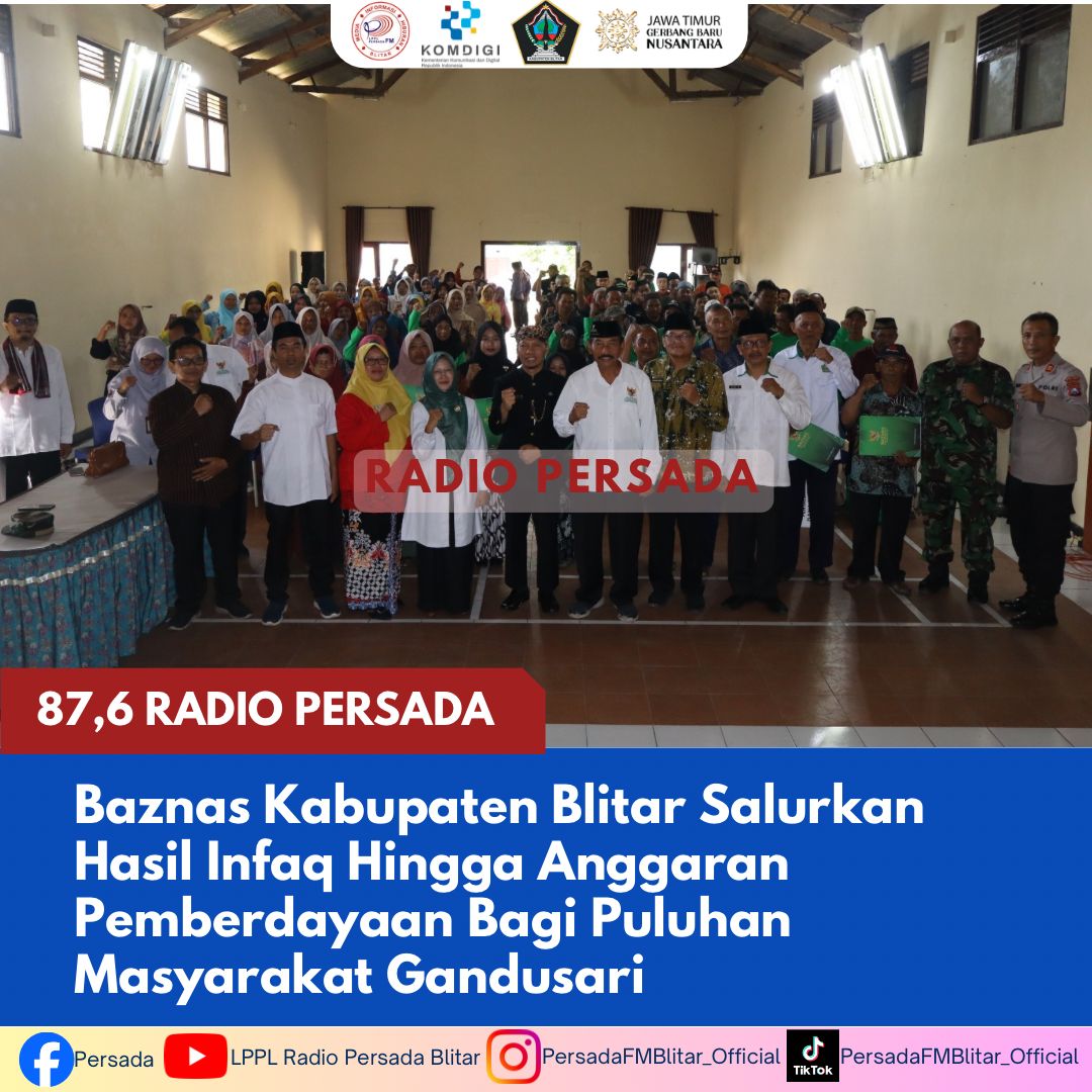 PersadaFM – Badan Amil Zakat Nasional (Baznas) Kabupaten Blitar kembali salurkan infak dan sedekah pada sejumlah penerima manfaat dari golongan pendidik, hafidz dan warga pra-sejahtera, Selasa (21/4/2026).