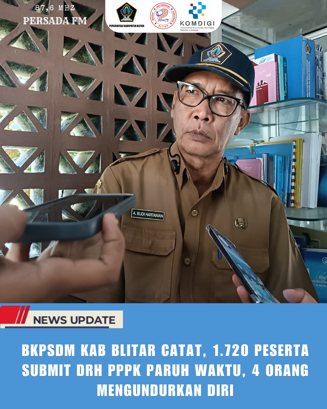 PersadaFM – Proses pengisian Daftar Riwayat Hidup (DRH) bagi calon PPPK paruh waktu di Kabupaten Blitar telah ditutup pada 22 September 2025. Dari total 1.724 peserta, sebanyak 1.720 berhasil melakukan submit, sedangkan 4 peserta lainnya menyatakan mundur.