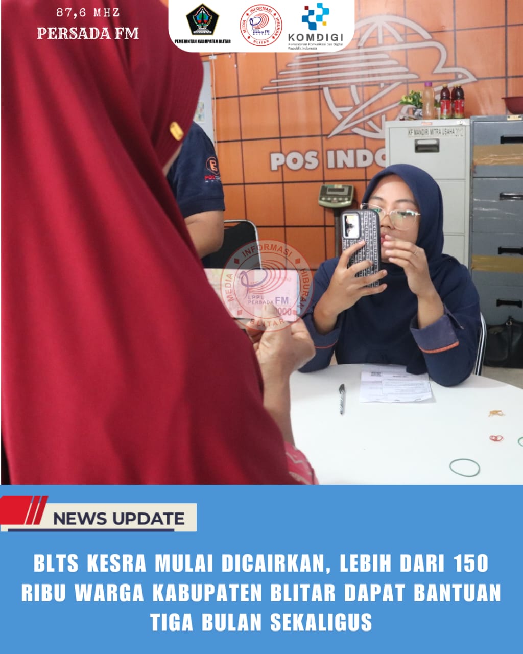 PersadaFM – Penyaluran Bantuan Langsung Tunai Sementara Kesejahteraan Rakyat (BLTS Kesra) di Kabupaten Blitar resmi bergulir sejak Selasa, (25/11). Program yang dihadirkan untuk membantu warga berpenghasilan rendah di tengah kenaikan harga kebutuhan pokok ini menjangkau lebih dari 150 ribu penerima manfaat.