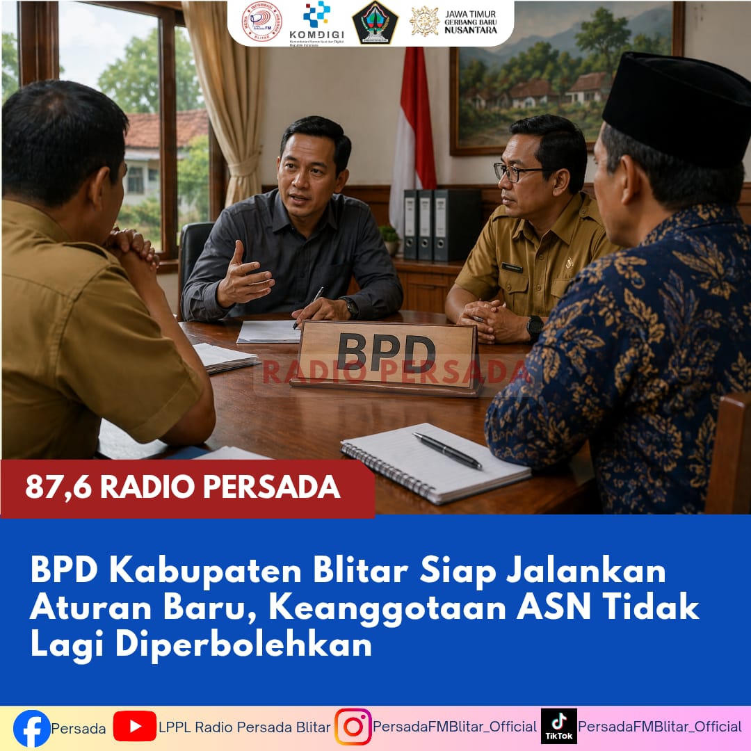 PersadaFM — Badan Permusyawaratan Desa (BPD) di Kabupaten Blitar menyatakan kesiapan menjalankan Peraturan Daerah (Perda) Nomor 4 Tahun 2026 yang melarang Aparatur Sipil Negara (ASN), baik PNS maupun PPPK, menjadi anggota BPD.