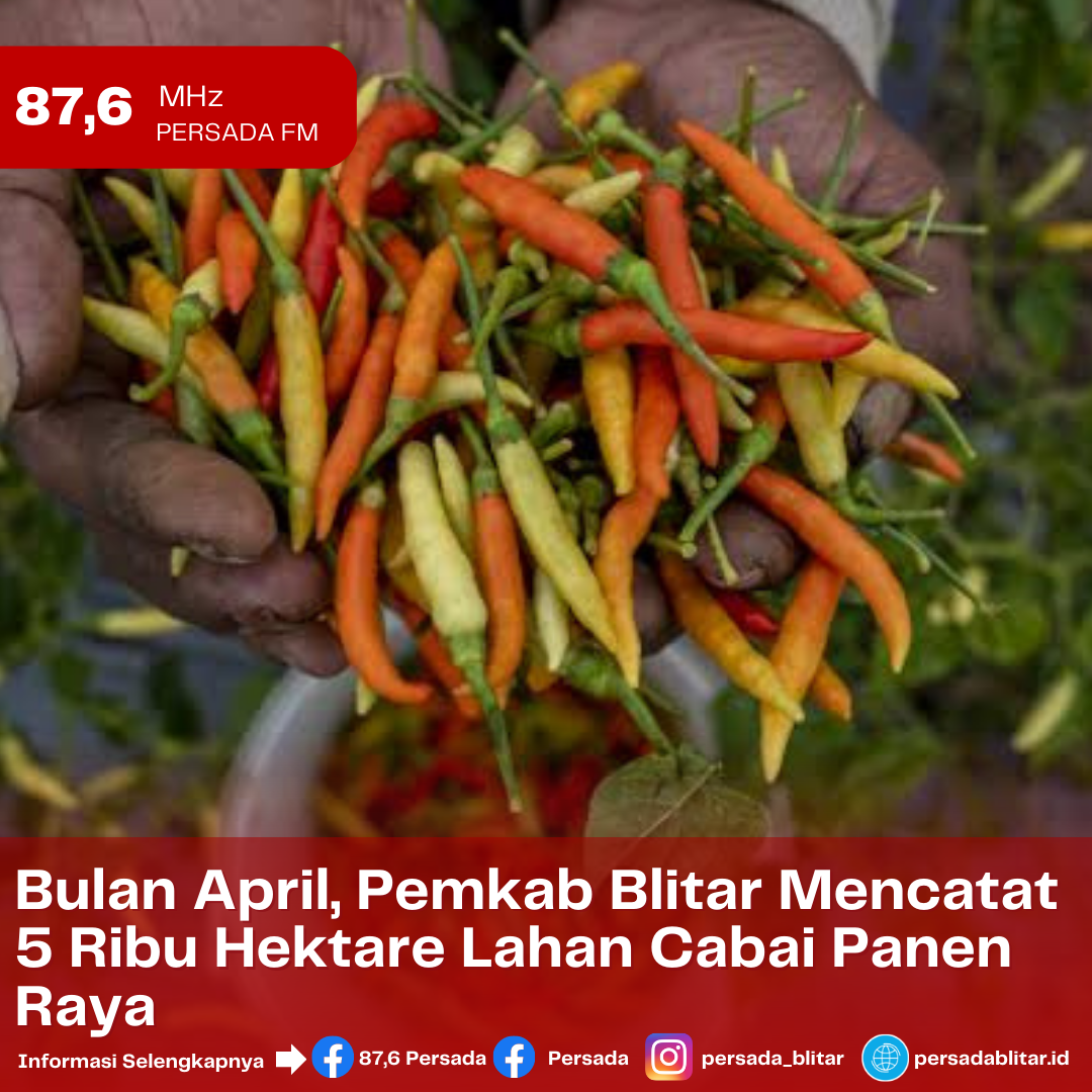 PersadaFM – Pada bulan bulan April 2023, Kabupaten Blitar akan memasuki puncak panen raya cabai rawit. Sesuai data dari Dinas Pertanian Kabupaten Blitar, totalnya ada lima ribu hektar lahan cabai rawit yang akan panen raya dalam waktu dekat ini.