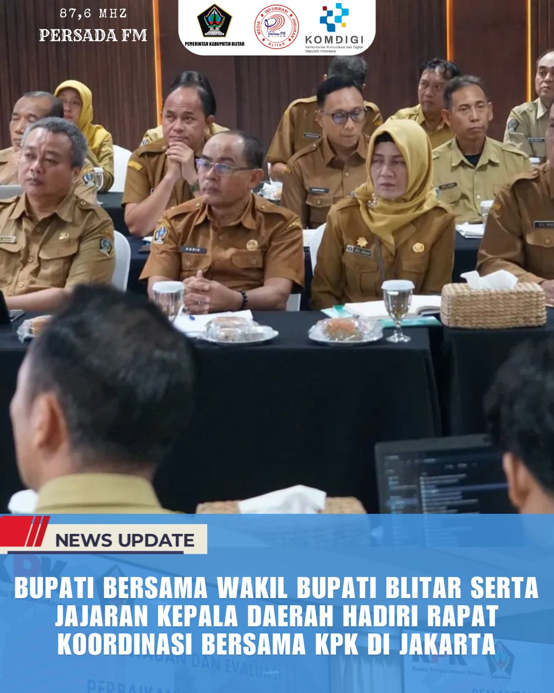PersadaFM – Pemerintah Kabupaten Blitar bersama jajaran pimpinan DPRD dan Perangkat Daerah lakukan Rapat Koordinasi dengan Komisi Pemberantasan Korupsi (KPK), Jakarta Selatan. Kegiatan ini dilaksanakan pada Selasa (24/6/2025) di Ruang Rapat Bhinneka Tunggal Ika, Gedung Merah Putih KPK Lt. 16 Jakarta Selatan.