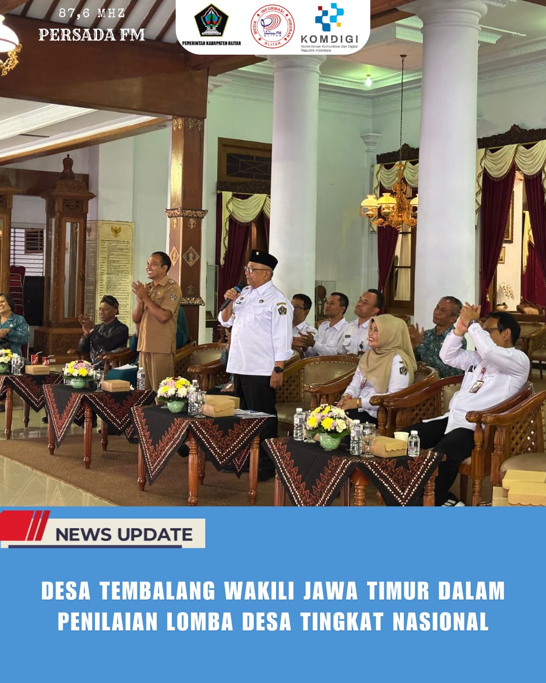 PersadaFM — Penilaian Lomba Desa Tingkat Nasional Regional II (Jawa–Bali) berlangsung di Pendopo Ronggo Hadinegoro, Rabu (29/10/2025) sore. Dalam ajang bergengsi ini, Desa Tembalang, Kecamatan Wlingi, menjadi wakil Jawa Timur untuk menunjukkan berbagai inovasi dan capaian pembangunan desa.