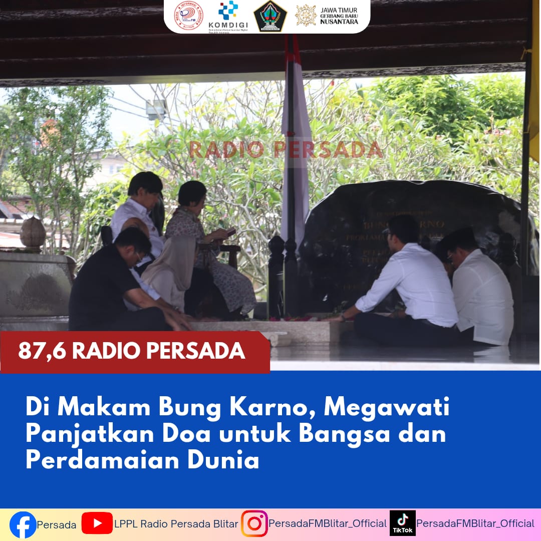 PersadaFM – Ketua Umum PDI Perjuangan, Megawati Soekarnoputri, bersama keluarga besar Soekarno melakukan ziarah ke Makam Bung Karno di Kota Blitar, Minggu (29/3/2026).