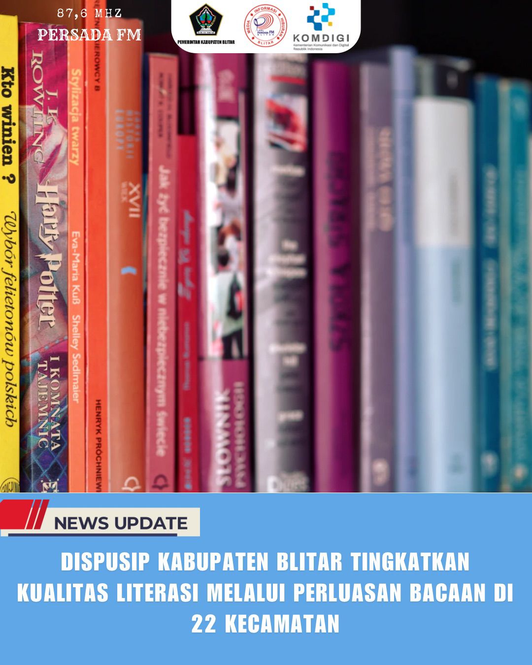 PersadaFM – Total koleksi buku Dinas Perpustakaan dan Kearsipan (Dispusip) Kabupaten Blitar saat ini mencapai 21.883 eksemplar. Jumlah tersebut terdiri dari 12.603 judul buku.