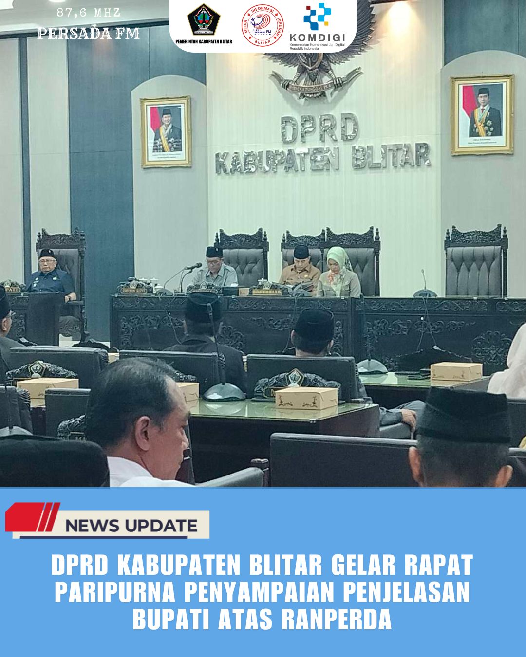 PersadaFM – Dewan Perwakilan Rakyat Daerah (DPRD) Kabupaten Blitar laksanakan Rapat Paripurna dengan agenda penyampaian penjelasan Bupati Blitar atas Rancangan Peraturan Daerah (Raperda) tentang Rencana Pembangunan Jangka Menengah Daerah (RPJMD) Kabupaten Blitar Tahun 2025–2029. Rapat pada Senin (26/5/2025) ini berlangsung di Graha Paripurna DPRD Kabupaten Blitar dipimpin oleh Ketua DPRD, Supriadi.