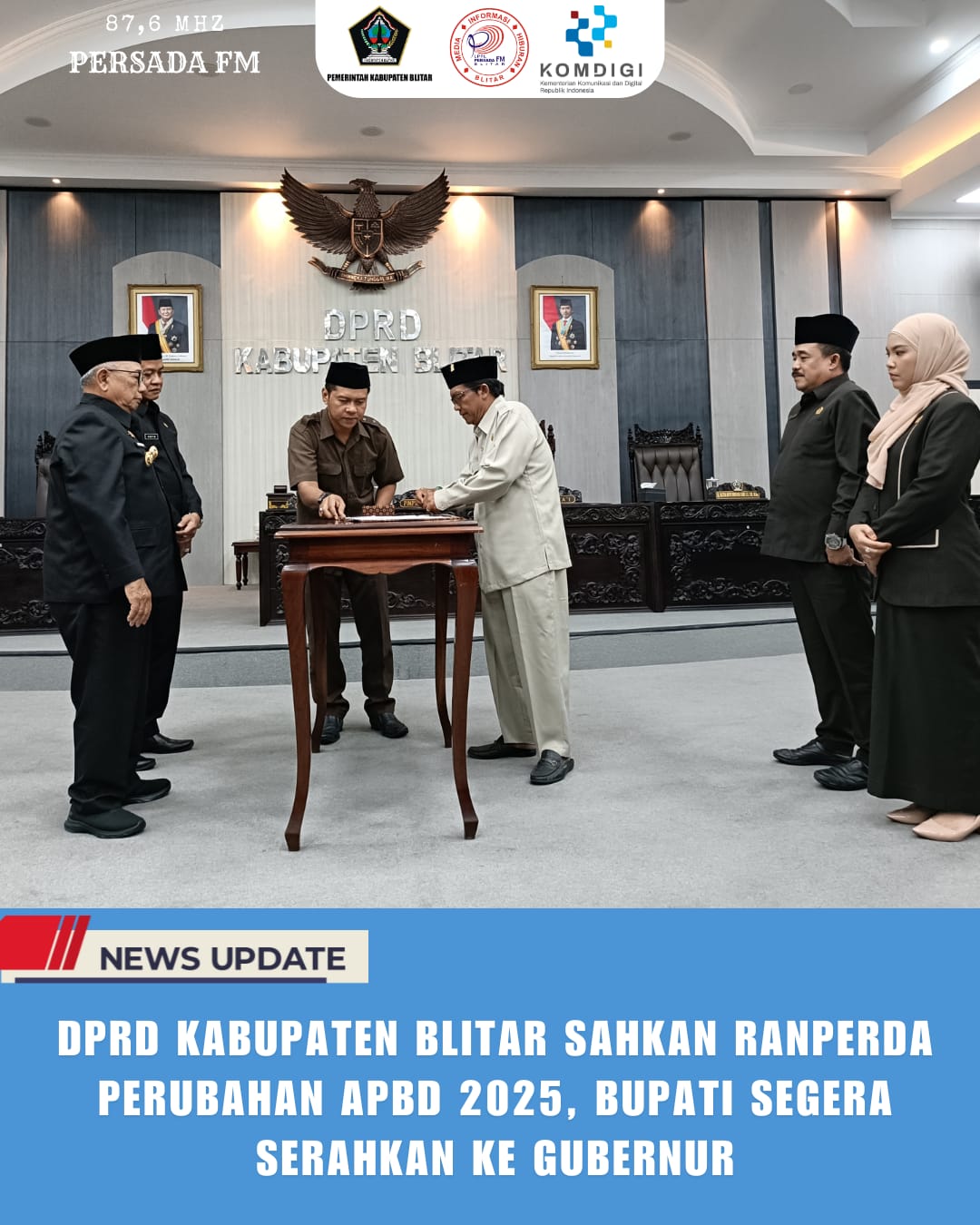 DPRD KABUPATEN BLITAR SAHKAN RANPERDA PERUBAHAN APBD 2025, BUPATI SEGERA SERAHKAN KE GUBERNUR