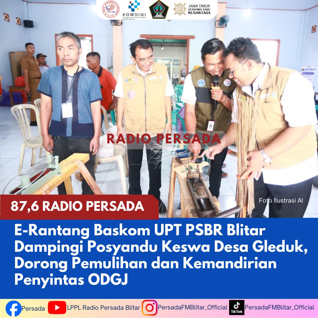 PersadaFM – Tim Edukasi Remaja Tangguh Berbasis Komunitas (E-Rantang Baskom) UPT Pelayanan Sosial Bina Remaja (UPT PSBR) Blitar, Dinas Sosial Provinsi Jawa Timur, kembali mendampingi Posyandu Kesehatan Jiwa (Keswa) di Kantor Desa Gleduk, Kecamatan Sanankulon, Selasa (20/1/2026).