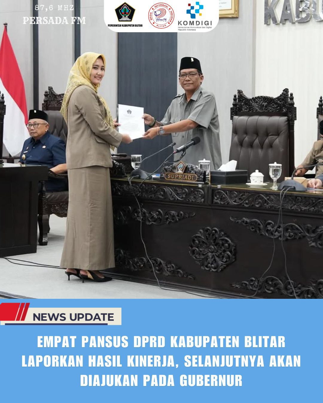 EMPAT PANSUS DPRD KABUPATEN BLITAR LAPORKAN HASIL KINERJA, SELANJUTNYA AKAN DIAJUKAN PADA GUBERNUR