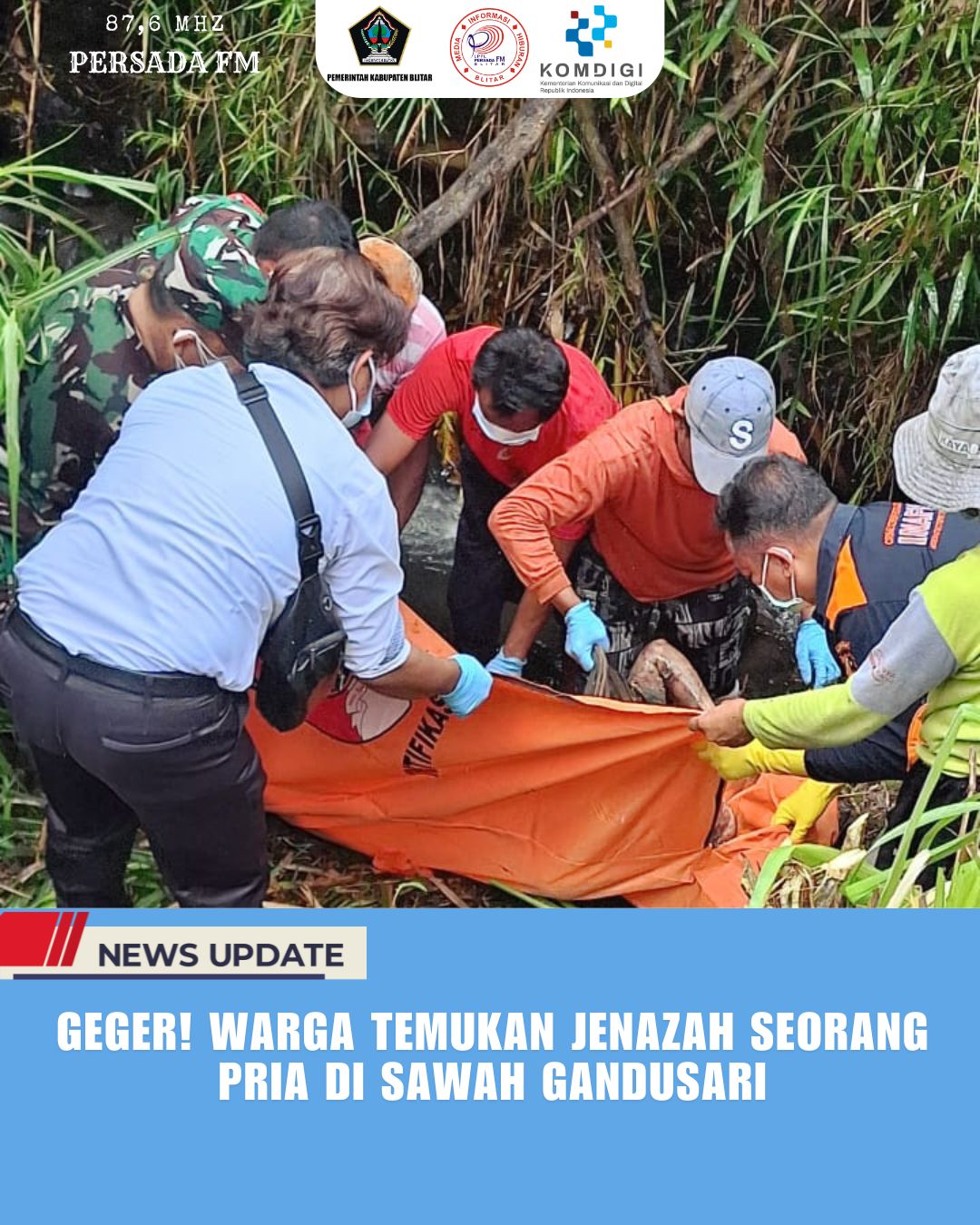 PersadaFM – Warga Kecamatan Gandusari, Kabupaten Blitar, digegerkan dengan penemuan mayat seorang lelaki di sungai persawahan. Kejadian ini pertama kali diketahui oleh salah satu warga saat mencari rumput disekitar lokasi penemuan mayat pada Senin (30/6/2025) siang.