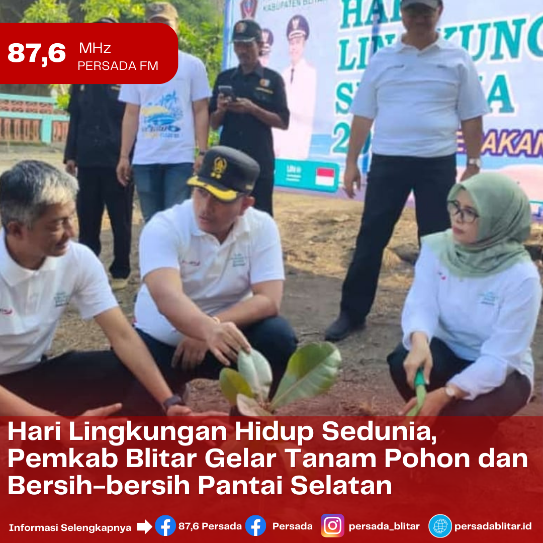 PERSADA FM- Pemkab Blitar menggelar aksi sosial yakni menanam pohon dan bersih-bersih Pantai Serang Kecamatan Panggungrejo, dalam rangka memperingatkan Hari Lingkungan Hidup Sedunia Tahun 2023, Senin (24/07/2023). Acara ini dihadiri langsung oleh Bupati Blitar Rini Syarifah.