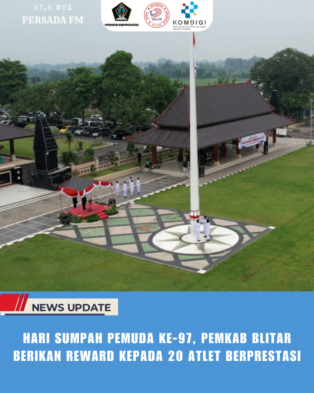 PersadaFM — Dalam rangka memperingati Hari Sumpah Pemuda ke-97 Tahun 2025, Pemerintah Kabupaten Blitar memberikan reward kepada 20 atlet berprestasi yang telah mengharumkan nama daerah pada ajang Pekan Olahraga Pelajar Daerah (POPDA) di Bangkalan. Pemberian penghargaan ini dilaksanakan bersamaan dengan Upacara Hari Sumpah Pemuda, Selasa (28/10), di Alun-Alun Kanigoro.