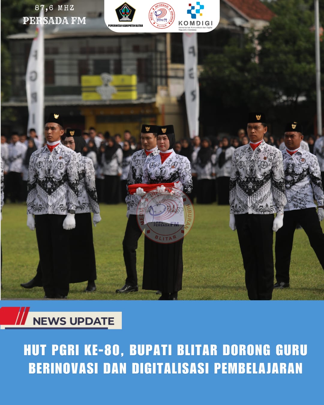 PersadaFM – Peringatan HUT ke-80 Persatuan Guru Republik Indonesia (PGRI) dan Hari Guru Nasional 2025 di Alun-Alun Kanigoro, Senin (24/11/2025), menjadi momentum bagi Bupati Blitar Rijanto untuk menekankan pentingnya inovasi dan adaptasi digital di dunia pendidikan.