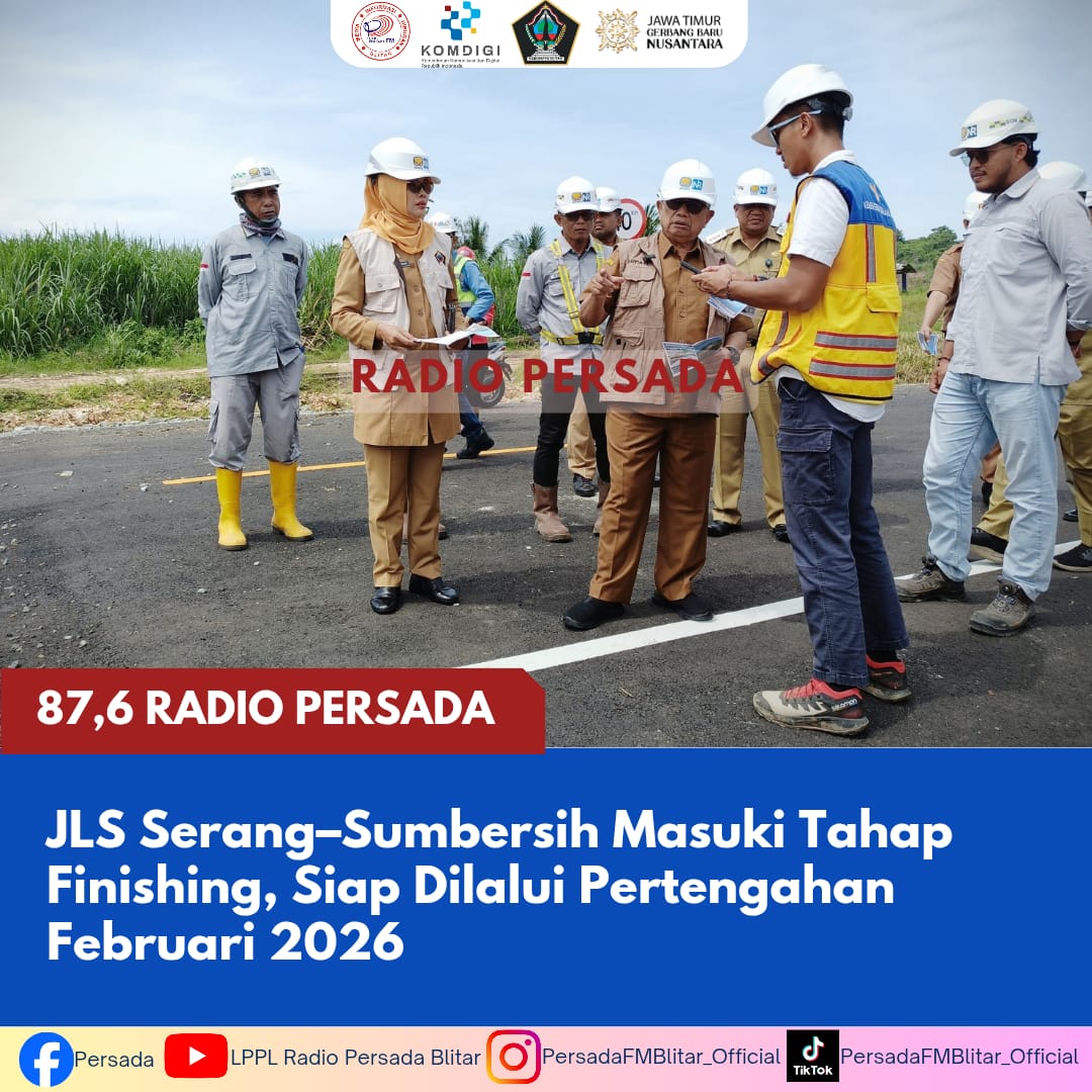 PersadaFM — Ruas Jalur Lintas Selatan (JLS) Serang–Sumbersih di Kabupaten Blitar segera dapat dimanfaatkan masyarakat. Pembangunan ruas yang masuk dalam paket Lot 3 tersebut kini telah memasuki tahap akhir dan ditargetkan tuntas 100 persen pada 16 Februari 2026.