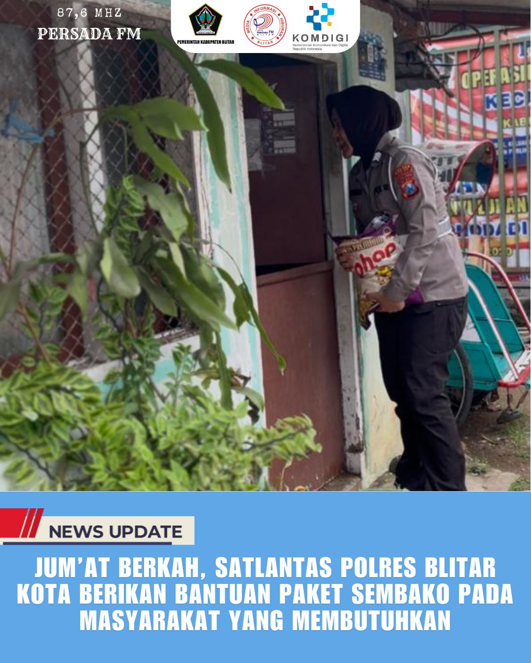 PersadaFM – Satlantas Polres Blitar Kota bagikan puluhan paket sembako kepada warga kurang mampu sebagai wujud kepedulian pada masyarakat. Kegiatan yang dilaksanakan pada Jumat (4/7/2025) menyasar tukang becak, pemulung, buruh harian, dan warga lansia yang tinggal di sekitar wilayah hukum Polres Blitar Kota.