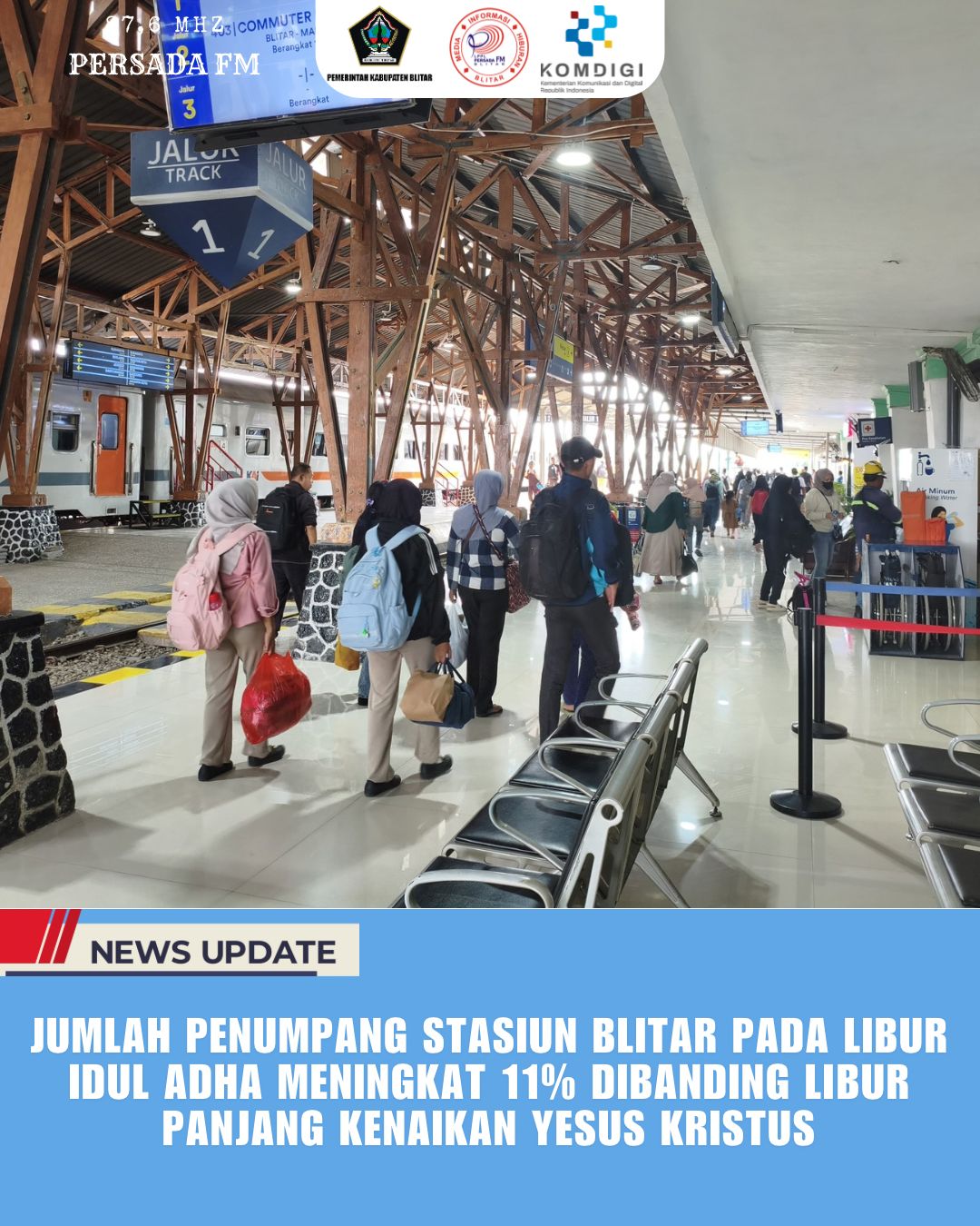 PersadaFM – Selama libur panjang hari raya Idul Adha tercatat 3.037 penumpang keberangkatan kereta api di Stasiun Blitar. Jumlah ini naik 11% dibandingkan libur panjang peringatan kenaikan Yesus Kristus