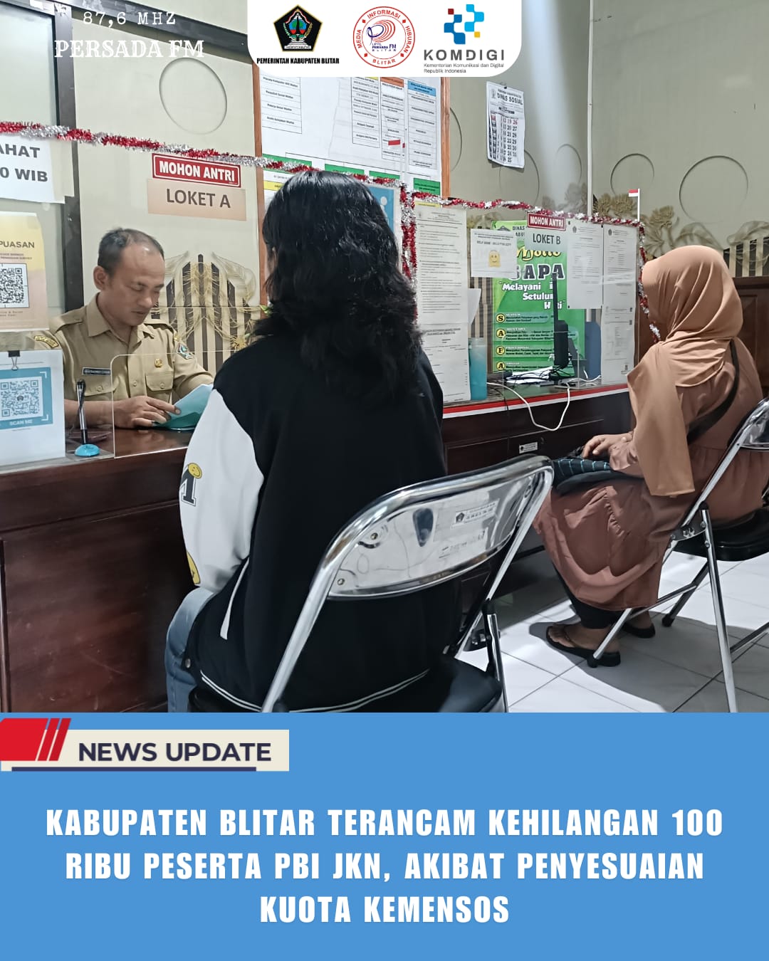 PersadaFM – Kabupaten Blitar berpotensi kehilangan lebih dari 100 ribu peserta Penerima Bantuan Iuran (PBI) Jaminan Kesehatan Nasional (JKN) setelah Kementerian Sosial (Kemensos) memberlakukan penyesuaian kuota baru berdasarkan proporsi penduduk miskin secara nasional. Kebijakan ini membuat sebagian penerima manfaat yang selama ini ditanggung pusat terancam terhapus dari kepesertaan.