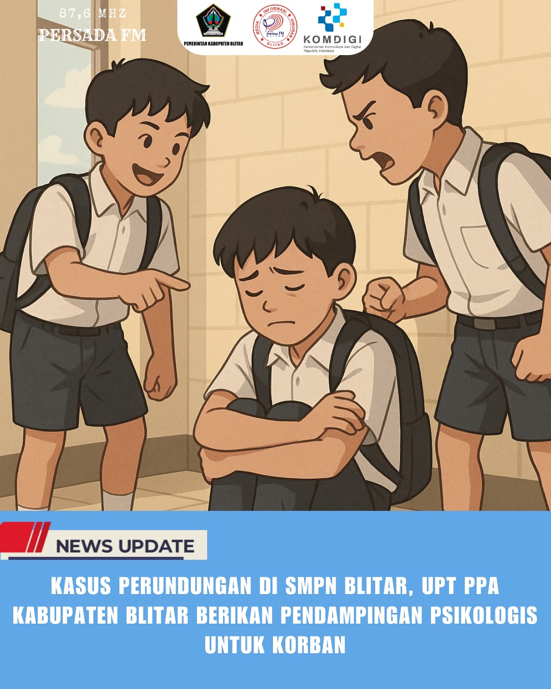 PersadaFM – Kasus perundungan di salah satu SMP Negeri di Kabupaten Blitar, Jumat (18/7/2025), terus menjadi sorotan. Video yang viral di media sosial memperlihatkan seorang siswa baru menerima pukulan dan tendangan dari pelajar lain setelah kegiatan kerja bakti, tanpa mampu memberikan perlawanan.