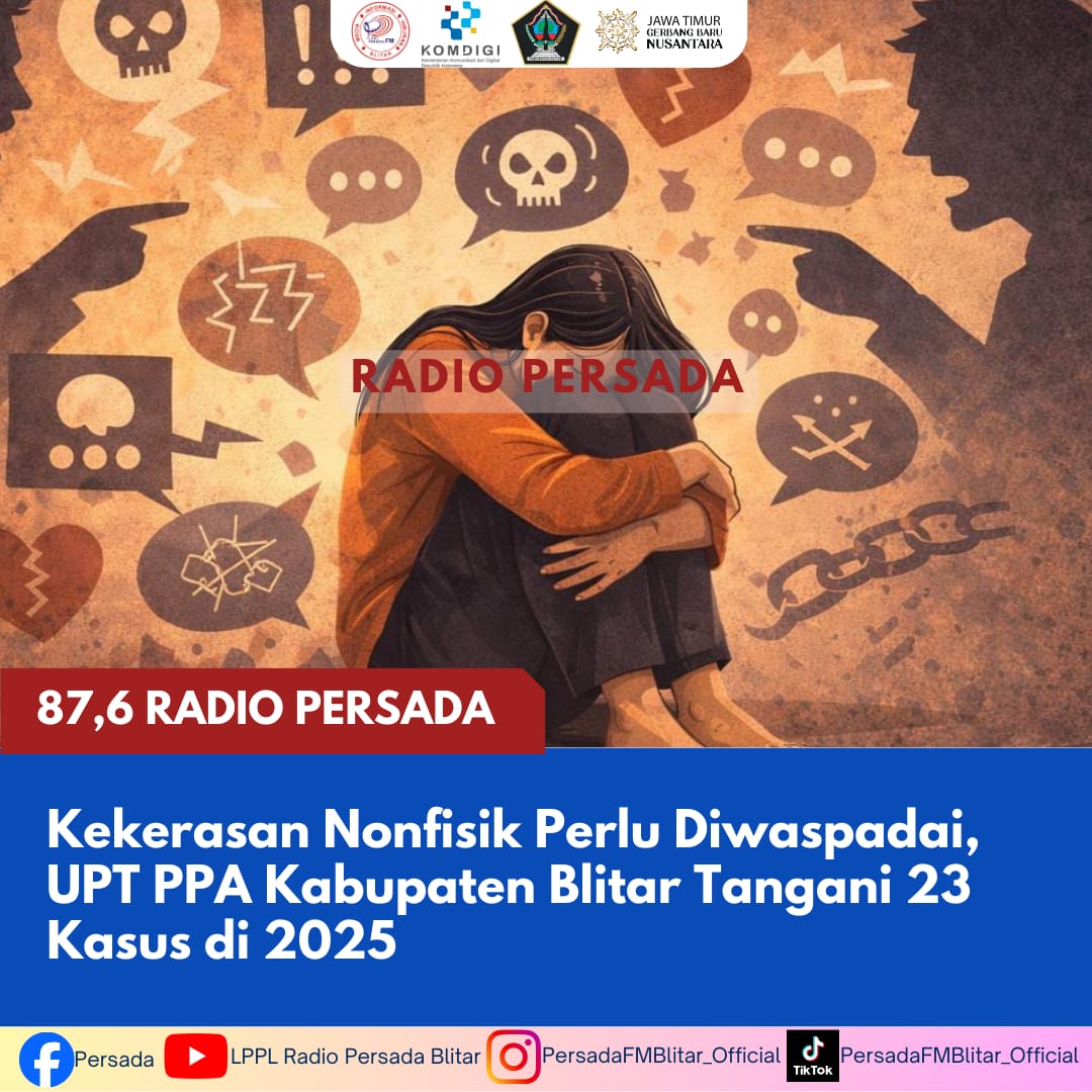 PersadaFM — Kekerasan terhadap perempuan di Kabupaten Blitar masih menjadi perhatian serius sepanjang tahun 2025. Berdasarkan rekapitulasi UPT Perlindungan Perempuan dan Anak (PPA) Kabupaten Blitar, tercatat 23 kasus kekerasan terhadap perempuan yang dilaporkan dan ditindaklanjuti sejak Januari hingga 31 Desember 2025.