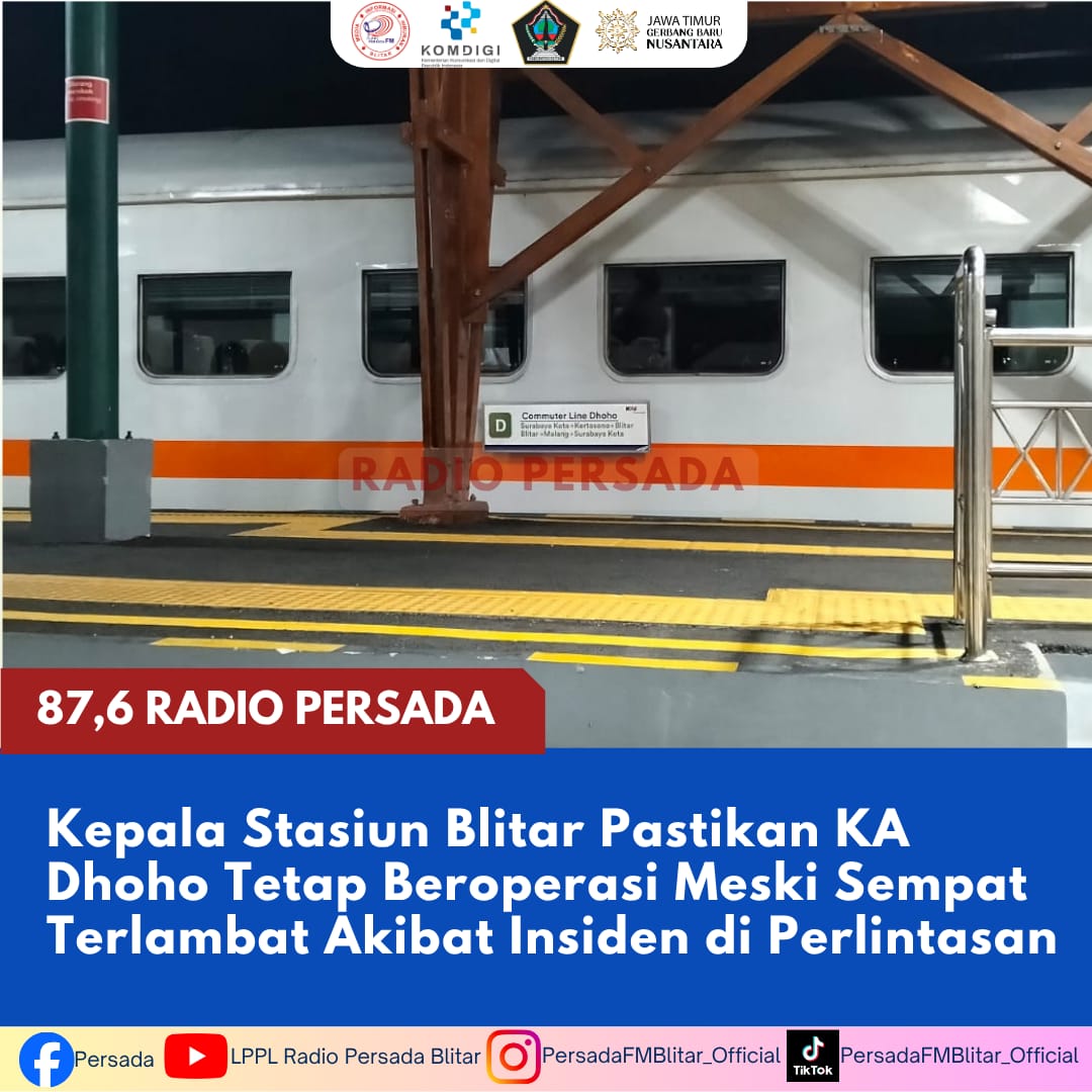 PersadaFM — Pihak Stasiun Blitar memastikan operasional Kereta Api (KA) Dhoho tetap berjalan meski sempat mengalami keterlambatan akibat insiden di perlintasan sebidang JPL 190, Selasa (28/4/2026) malam.