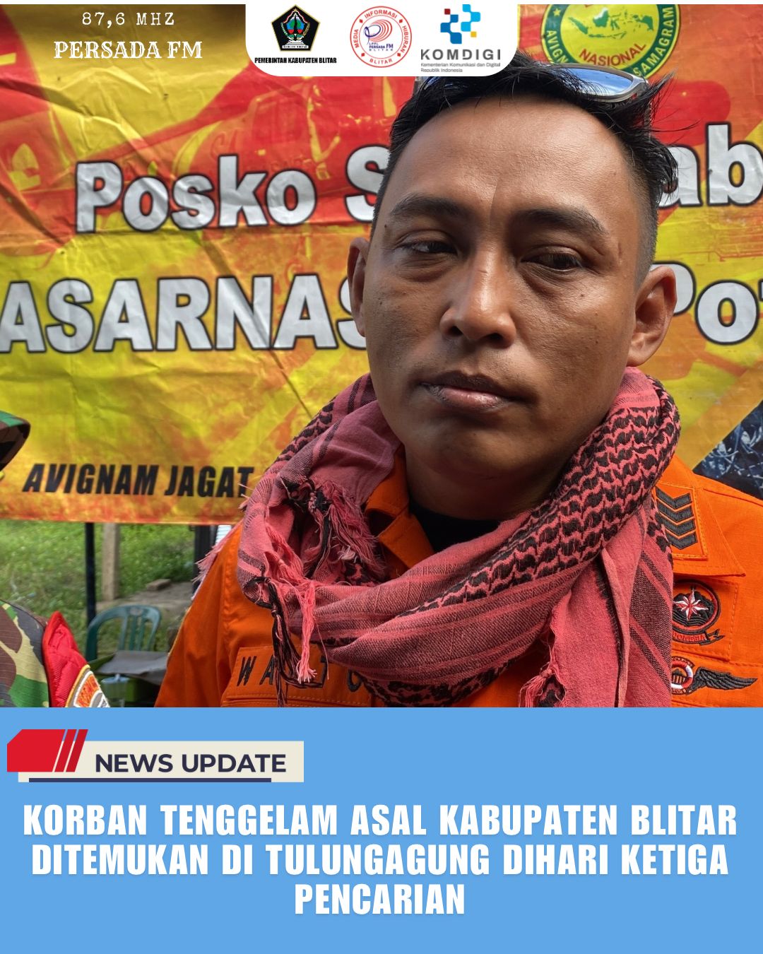 PersadaFM – Tim SAR gabungan telah menemukan jasad MDNI (19) remaja asal Desa Purworejo, Kecamatan Sanankulon, Kabupaten Blitar yang hanyut di aliran Sungai Brantas. Korban ditemukan pada Kamis (29/5/2025) siang di Tulungagung.