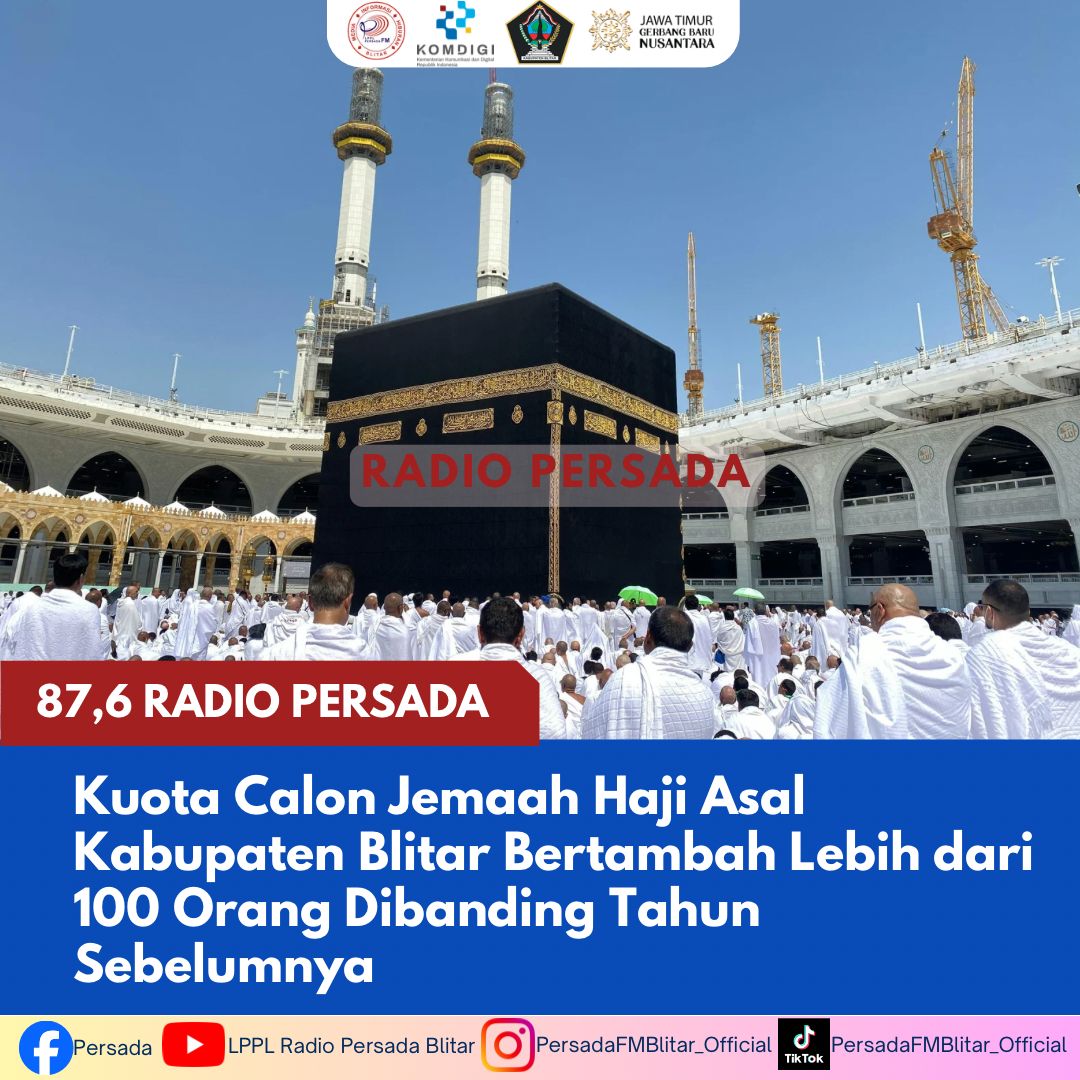 PersadaFM – Jumlah jemaah haji asal Kabupaten Blitar tahun ini meningkat hingga 115 orang dibanding tahun sebelumnya. Hal itu lantaran adanya penambahan kuota untuk wilayah Jawa Timur.