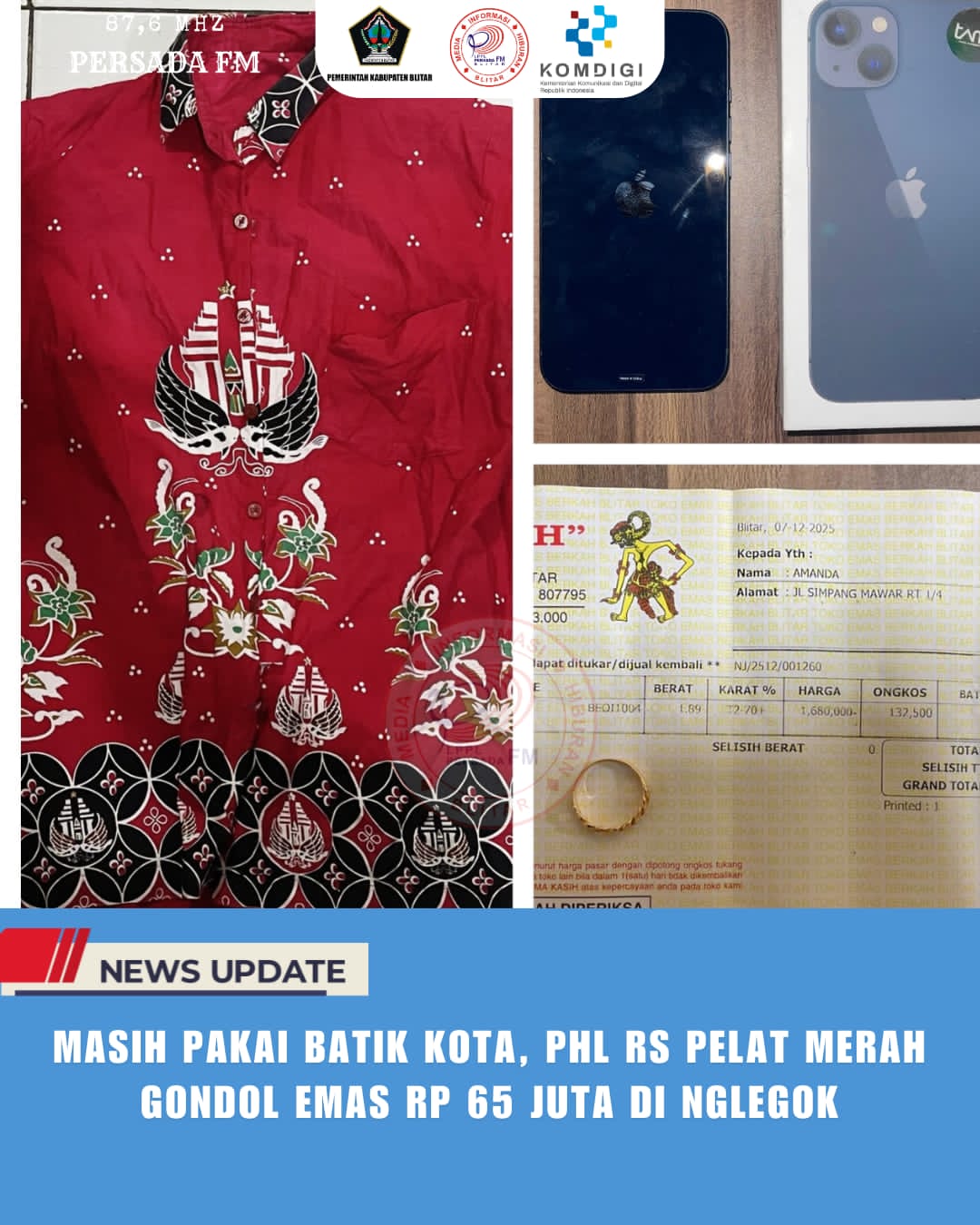 Dari pemeriksaan, pelaku diketahui sebagai pegawai harian lepas di salah satu rumah sakit pelat merah di Kota Blitar. Saat melakukan aksi pencurian, pelaku masih mengenakan seragam batik Kota Blitar, identitas pegawai instansi pemerintah.