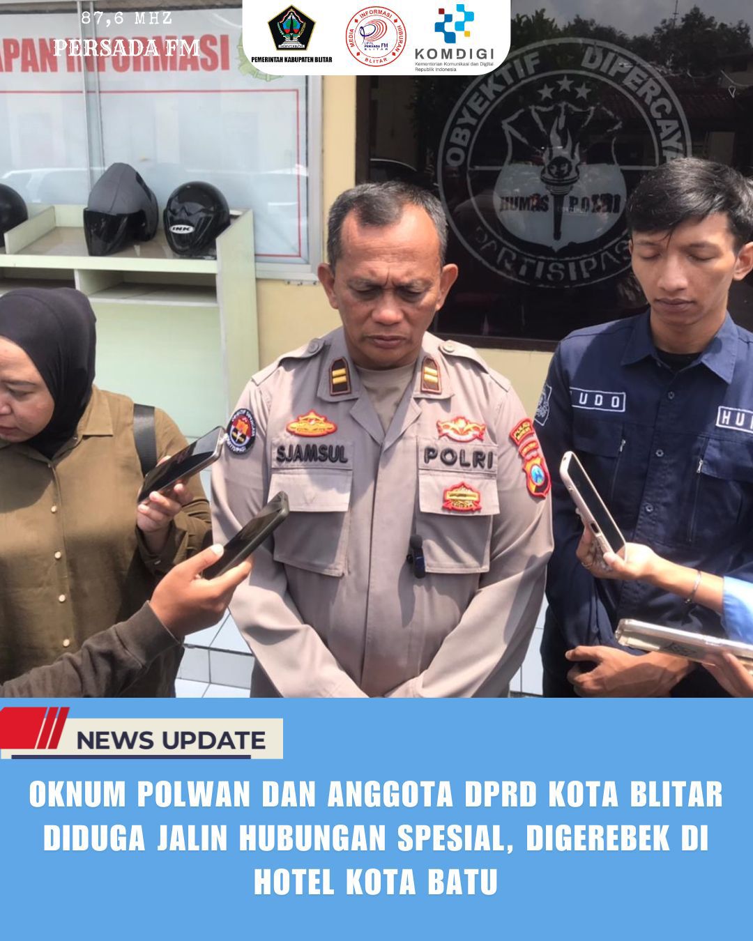 PersadaFM – Seorang oknum polisi wanita Polres Blitar Kota diduga terlibat hubungan terlarang dengan anggota DPRD Kota Blitar. Hal tersebut diketahui usai kedua sejoli ini terciduk penggerebekan anggota Polres Batu di salah satu kamar hotel yang ada di Kota Batu.