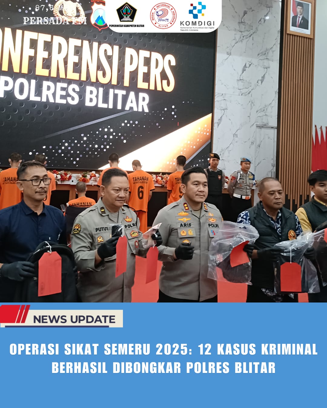 PersadaFM – Melalui Operasi Sikat Semeru 2025 yang digelar selama dua belas hari, mulai 22 Oktober hingga 2 November 2025, jajaran Polres Blitar berhasil mengungkap 12 kasus kriminal dengan mengamankan 12 tersangka dari berbagai jenis tindak pidana.