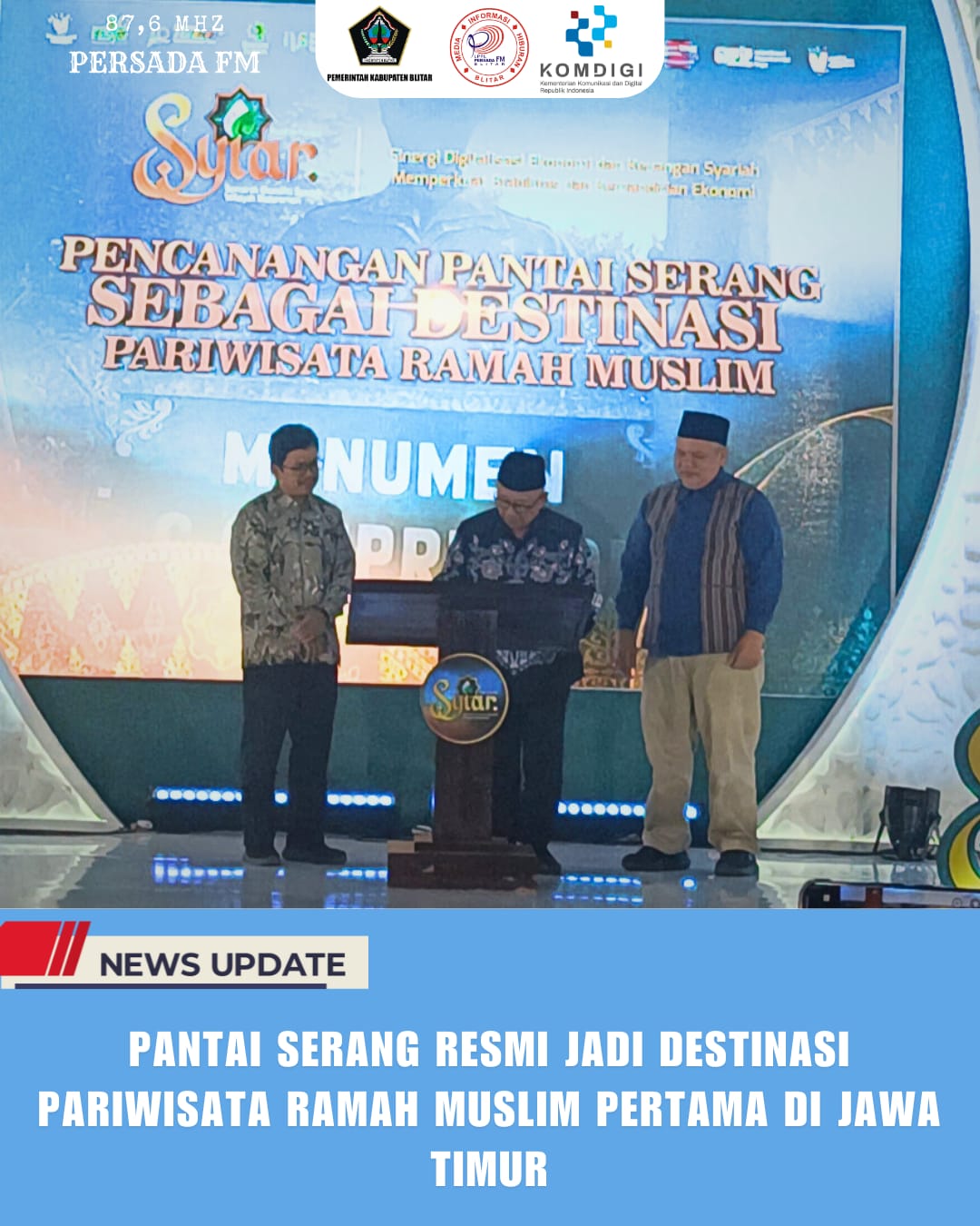 PersadaFM – Pantai Serang di Kecamatan Panggungrejo, Kabupaten Blitar, resmi ditetapkan sebagai destinasi wisata ramah muslim pertama di Jawa Timur. Penetapan ini diumumkan bersamaan dengan pembukaan Semarak Ekonomi Syariah Wilayah Mataraman (SYIAR) 2025 di Pendopo Sasana Adhi Praja Kabupaten Blitar, Kamis (14/8/2025).