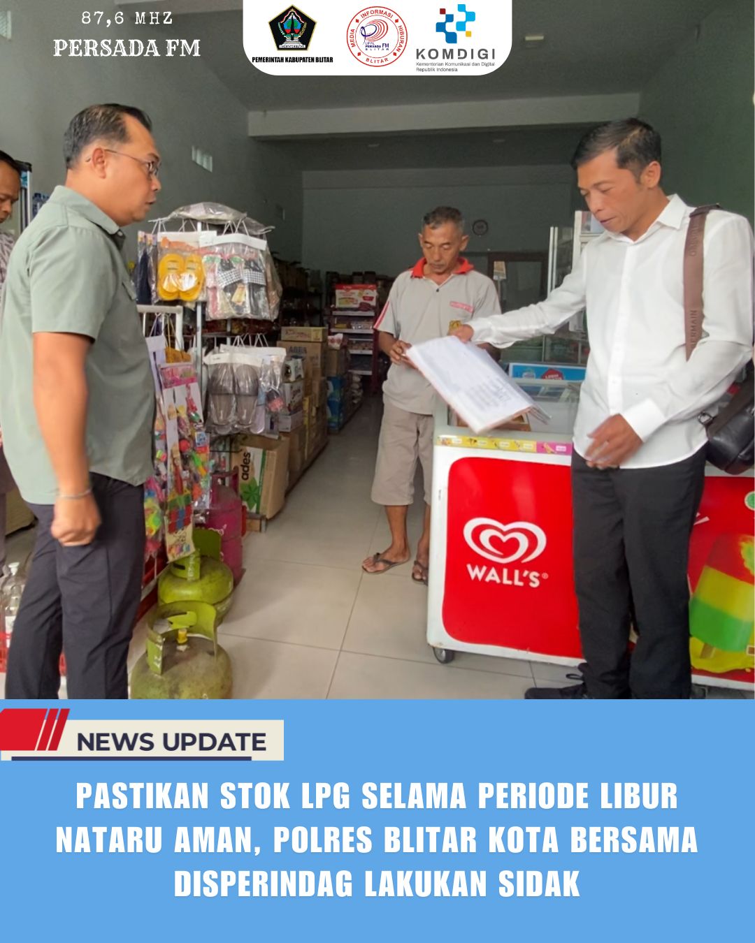 PersadaFM – Pastikan stok gas LPG 3kg memadai selama libur Natal dan Tahun Baru (Nataru) 2025, Polres Blitar Kota bersama Disperindag Kota Blitar melakukan inspeksi mendadak (sidak) ke sejumlah pangkalan gas, Rabu (19/11/2025). Hasilnya, stok saat ini masih terpenuhi, namun para pengecer meminta tambahan kuota.
