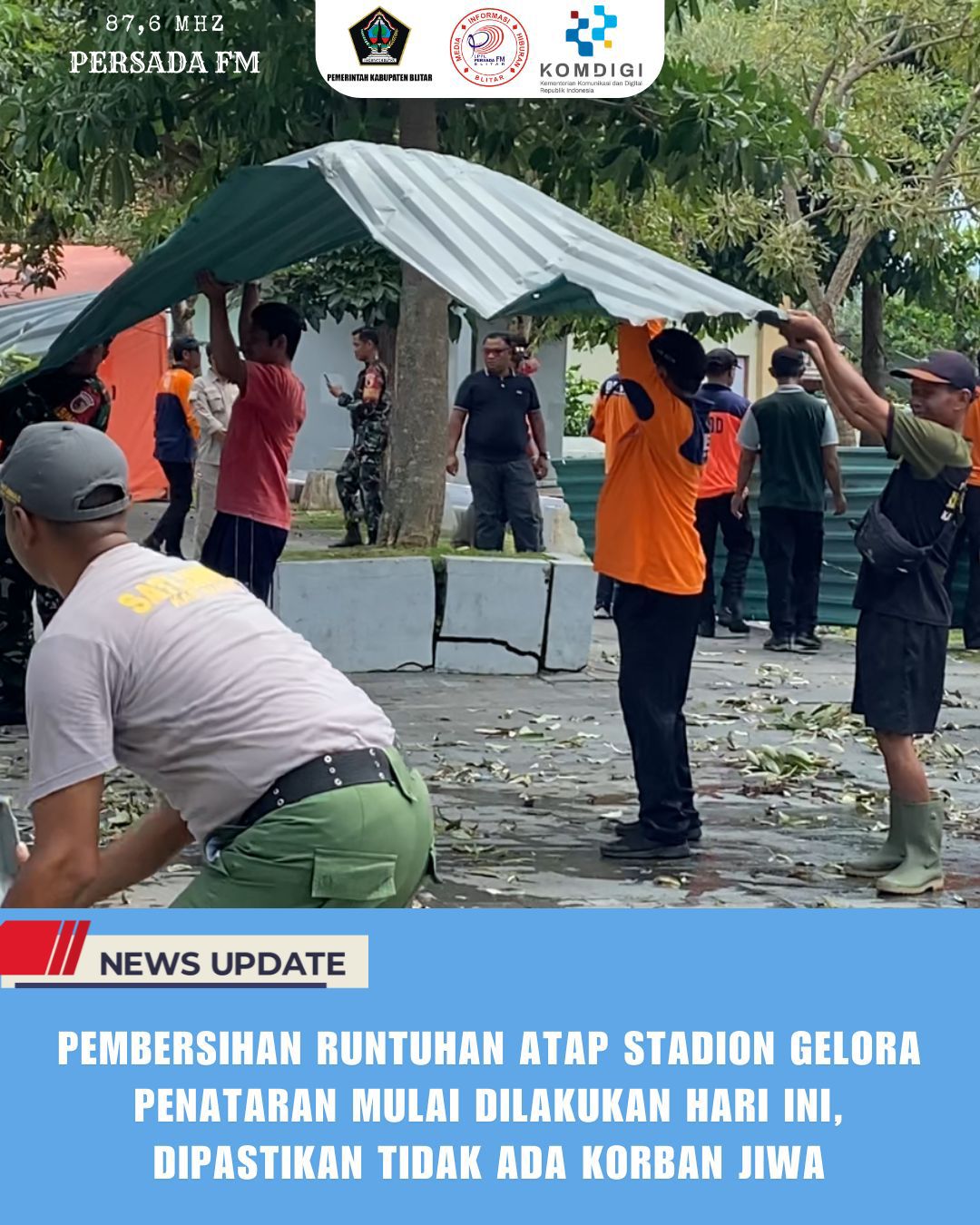 PEMBERSIHAN RUNTUHAN ATAP STADION GELORA PENATARAN MULAI DILAKUKAN HARI INI, DIPASTIKAN TIDAK ADA KORBAN JIWA
