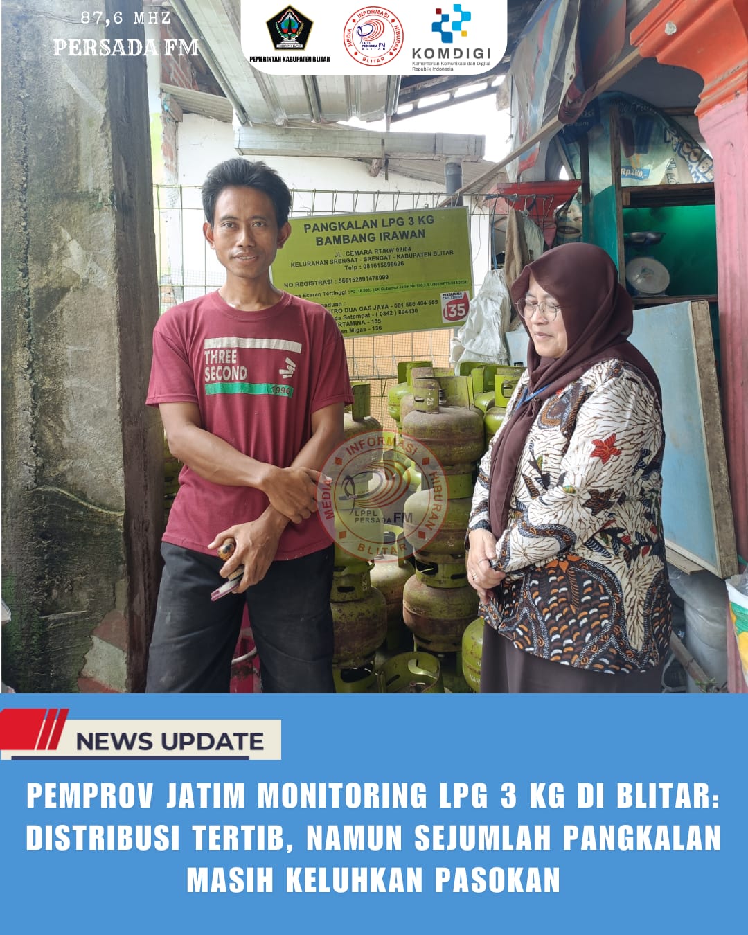 PersadaFM – Pemerintah Provinsi Jawa Timur melalui Biro Perekonomian Setda Jatim melakukan monitoring distribusi LPG 3 kilogram di Kabupaten Blitar. Pemantauan dilakukan di beberapa tempat seperti laundry, rumah makan, dan pangkalan elpiji untuk memastikan penggunaan LPG subsidi tetap tepat sasaran.