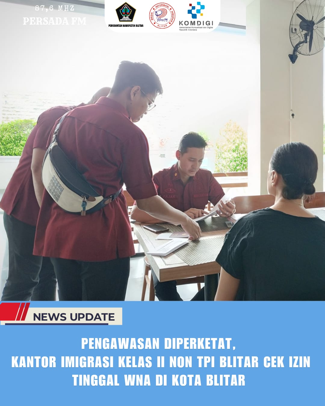 PersadaFM – Kantor Imigrasi Kelas II Non TPI Blitar menggelar operasi gabungan pengawasan warga negara asing (WNA) di wilayah Kota Blitar pada Rabu (23/7/2025).