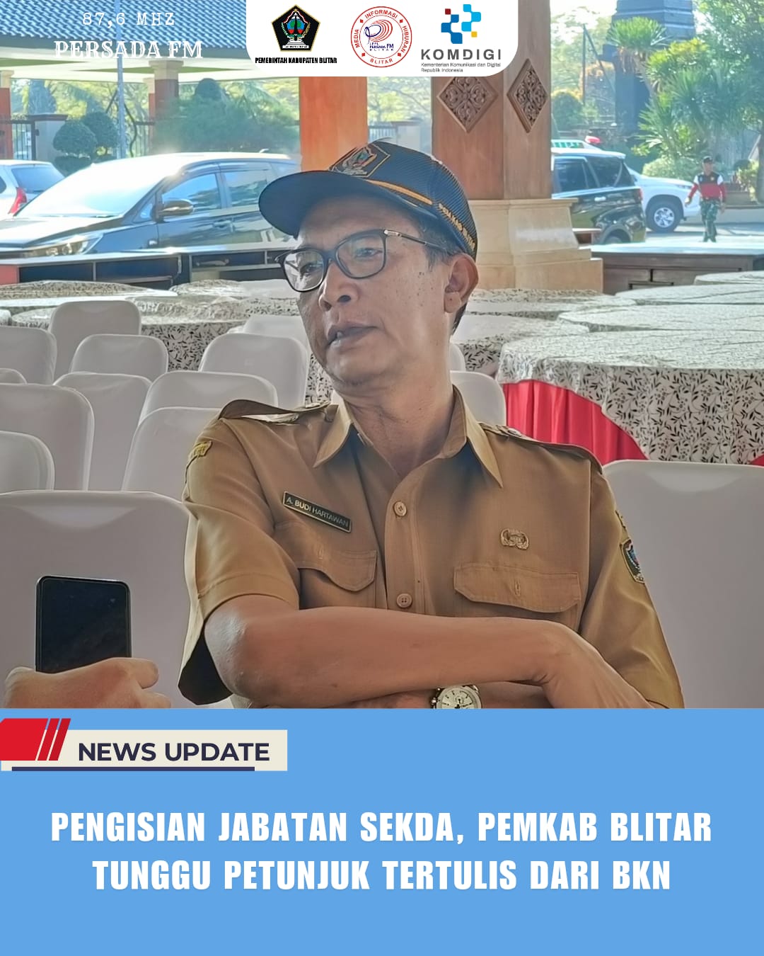 PersadaFM – Pemerintah Kabupaten Blitar hingga kini belum menetapkan mekanisme pengisian jabatan Sekretaris Daerah (Sekda) secara definitif. Koordinasi telah dilakukan dengan Badan Kepegawaian Negara (BKN), namun masih menunggu petunjuk tertulis sebagai dasar pelaksanaan.