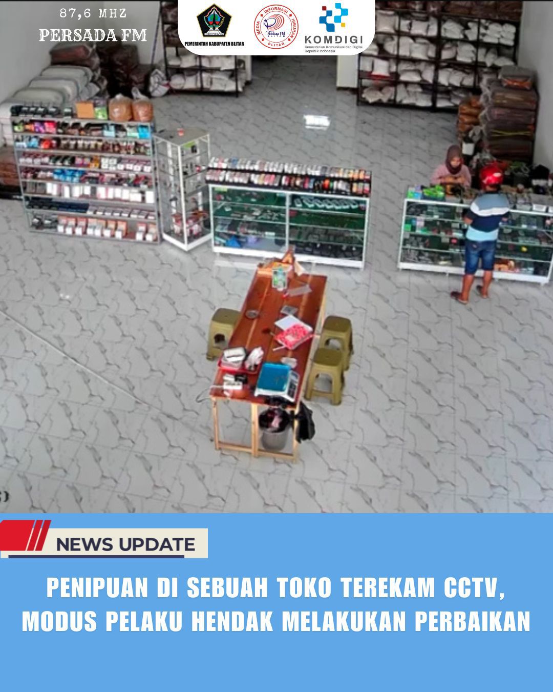PersadaFM – Uang Rp. 2.000.000 milik salah satu toko di Kelurahan Kauman, Kecamatan Srengat, Kabupaten Blitar raib usai jadi sasaran penipuan. Aksi penipuan ini terekam dalam CCTV toko dan telah dilaporkan Polsek Srengat.