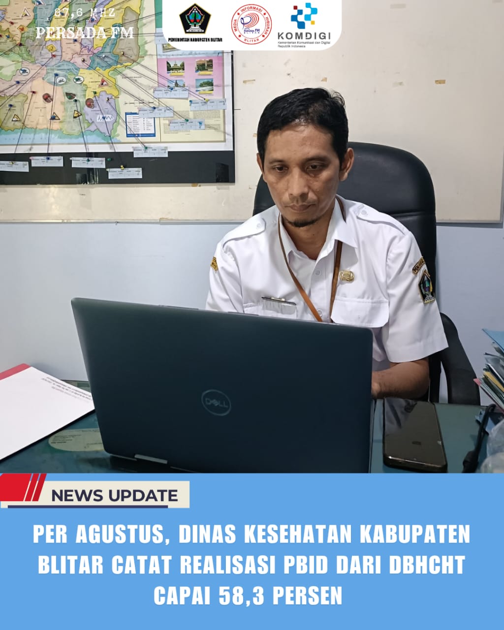 PersadaFM – Pemanfaatan Dana Bagi Hasil Cukai Hasil Tembakau (DBHCHT) di Kabupaten Blitar terus berjalan. Dinas Kesehatan Kabupaten Blitar Hingga Agustus 2025 mencatat realisasi program Penerima Bantuan Iuran Daerah (PBID) sudah menembus 58,3 persen dari total anggaran Rp12,6 miliar. Artinya, sekitar Rp7,4 miliar telah digunakan untuk membayar iuran BPJS Kesehatan bagi warga kurang mampu.