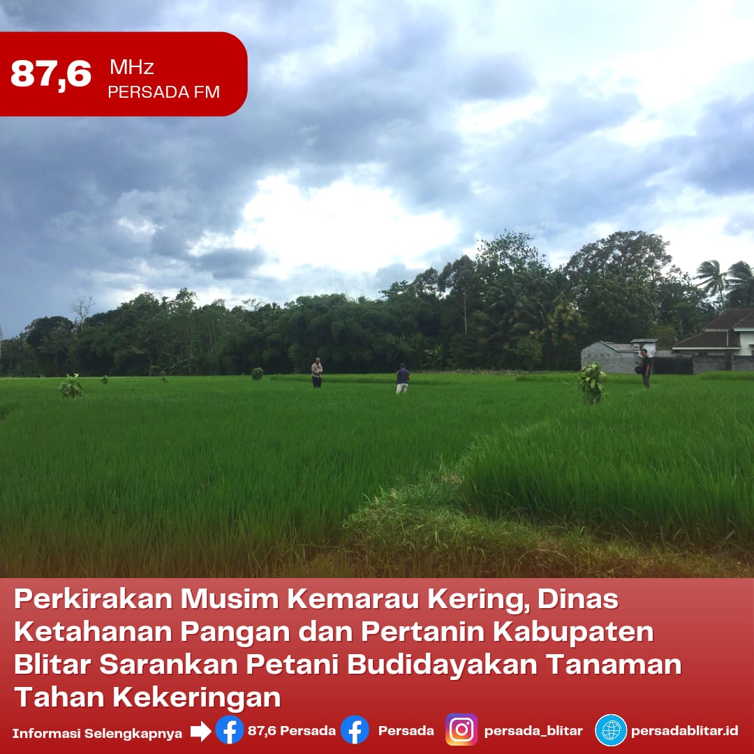 PersadaFM – Sesuai data yang dihimpun dari Badan Meteorologi, Klimatologi dan Geofisika (BMKG) tercatat pada tahun 2023 Indonesia akan memasuki musim kemarau kering. Hal tersebut tentunya juga akan berpengaruh terhadap jenis komoditas yang akan ditanami Petani di wilayah Kabupaten Blitar.