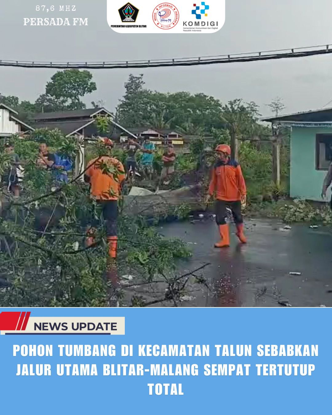POHON TUMBANG DI KECAMATAN TALUN SEBABKAN JALUR UTAMA BLITAR-MALANG SEMPAT TERTUTUP TOTAL