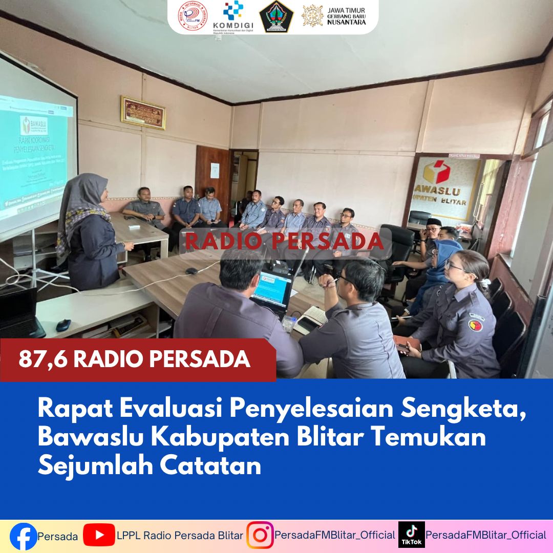 PersadaFM – Bawaslu Kabupaten Blitar laksanakan rapat internal sekaligus rapat koordinasi penyelesaian sengketa, Senin (27/4/2026). Pada agenda ini, Bawaslu soroti aspek penyelesaian sengketa dan pengawasan pemutakhiran data partai politik.