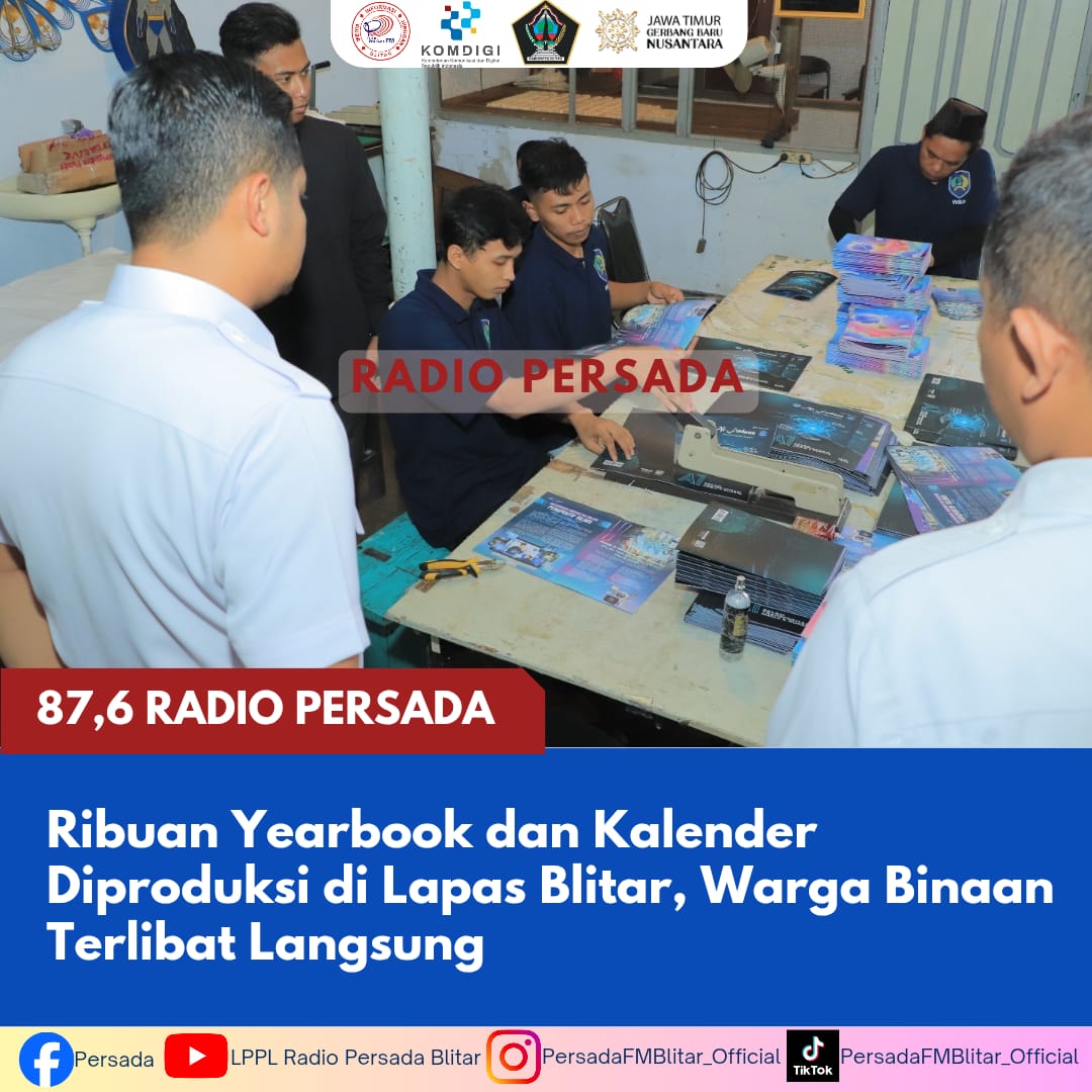 PersadaFM — Lembaga Pemasyarakatan (Lapas) Kelas IIB Blitar terus mengoptimalkan program pembinaan kemandirian melalui kegiatan kerja produktif. Kali ini, Lapas Blitar bekerja sama dengan CV Matahati Kreatif dalam bidang percetakan serta produksi tas poket packaging, Minggu (18/01).