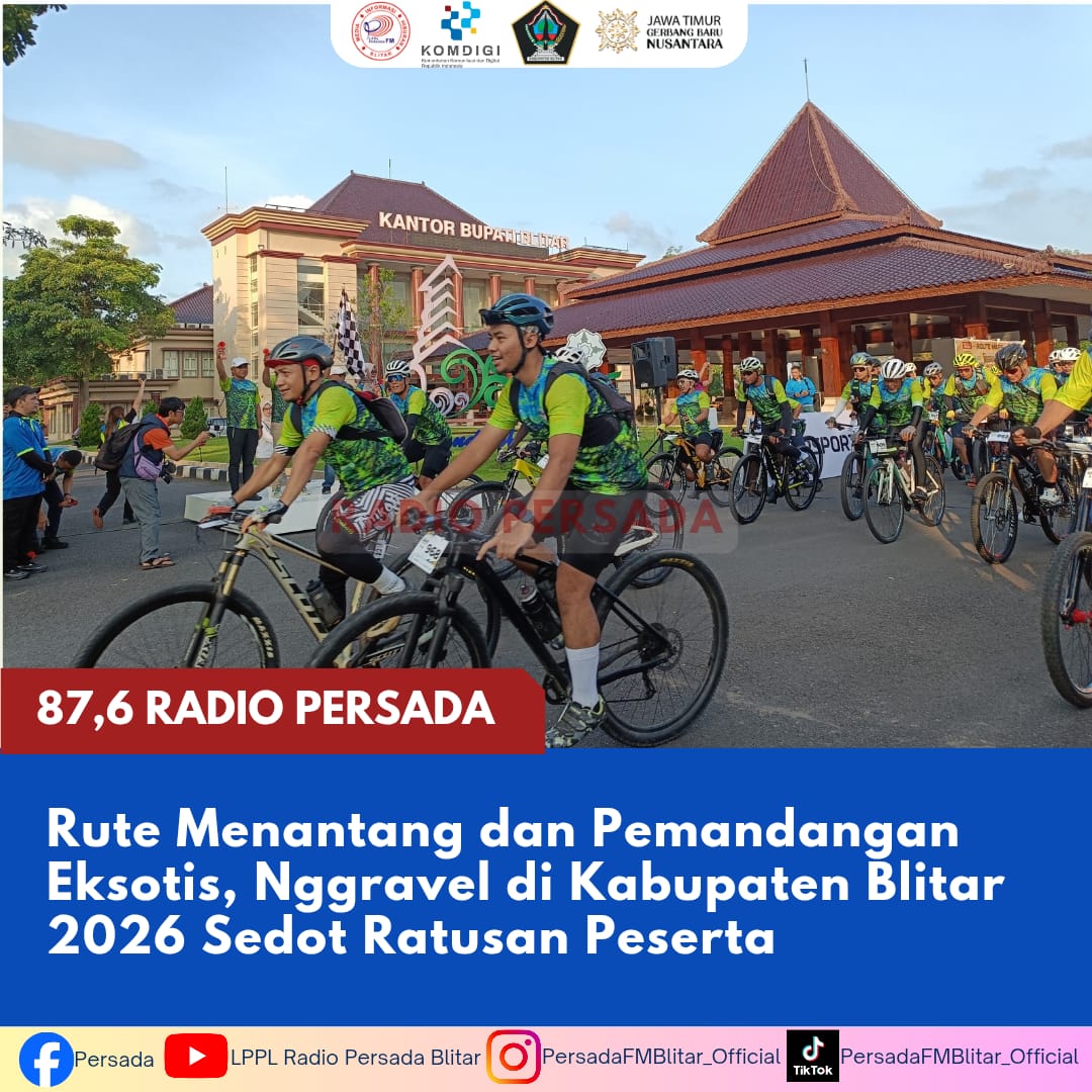 PersadaFM — Event sepeda tahunan Nggravel Blitar 2026 kembali digelar dengan antusiasme tinggi. Ratusan pesepeda dari berbagai daerah di Indonesia turut ambil bagian dalam kegiatan yang berlangsung pada Minggu (19/4/2026) tersebut.