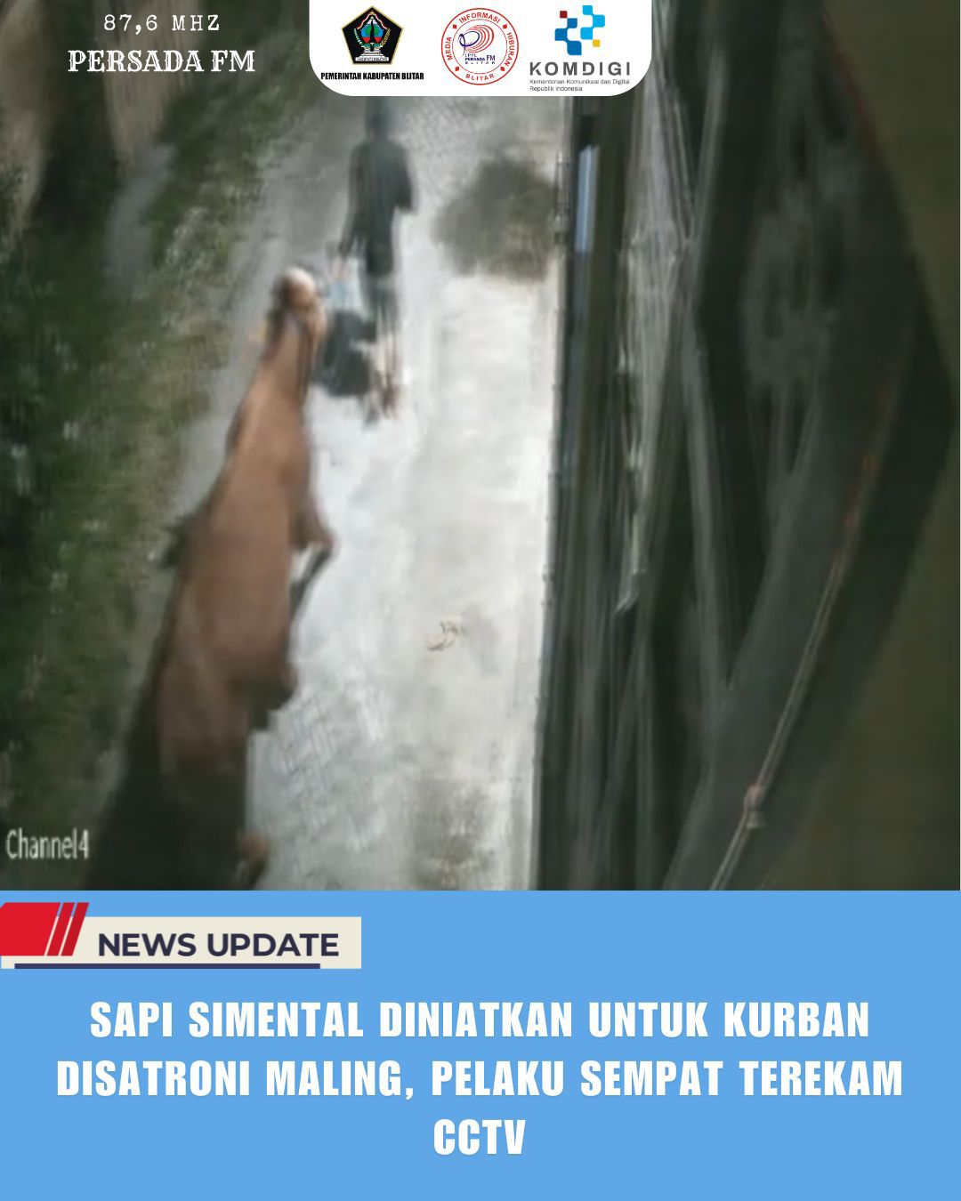 PersadaFM – Sapi gaduh atau sapi ternak dengan sistem titip bagi hasil milik warga Kota Blitar digondol maling pada Rabu (27/8/2025) dini hari. Kejadian ini sempat membuat masyarakat resah sekaligus heran karena lokasi kandang sapi tersebut yang berada di area padat penduduk serta tengah kota.