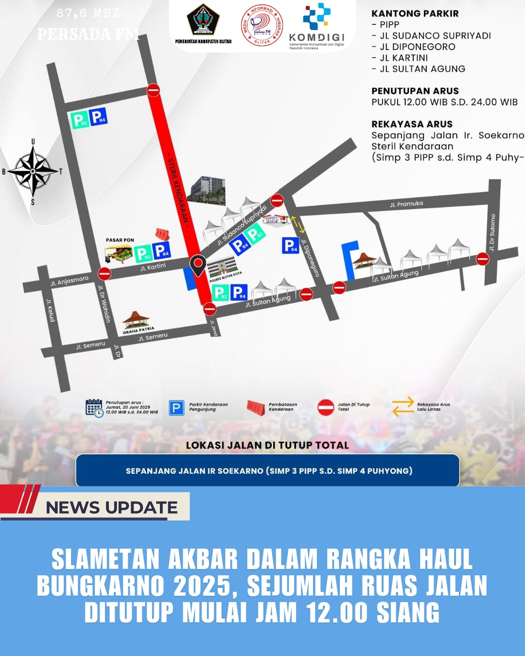 SLAMETAN AKBAR DALAM RANGKA HAUL BUNGKARNO 2025, SEJUMLAH RUAS JALAN DITUTUP MULAI JAM 12.00 SIANG